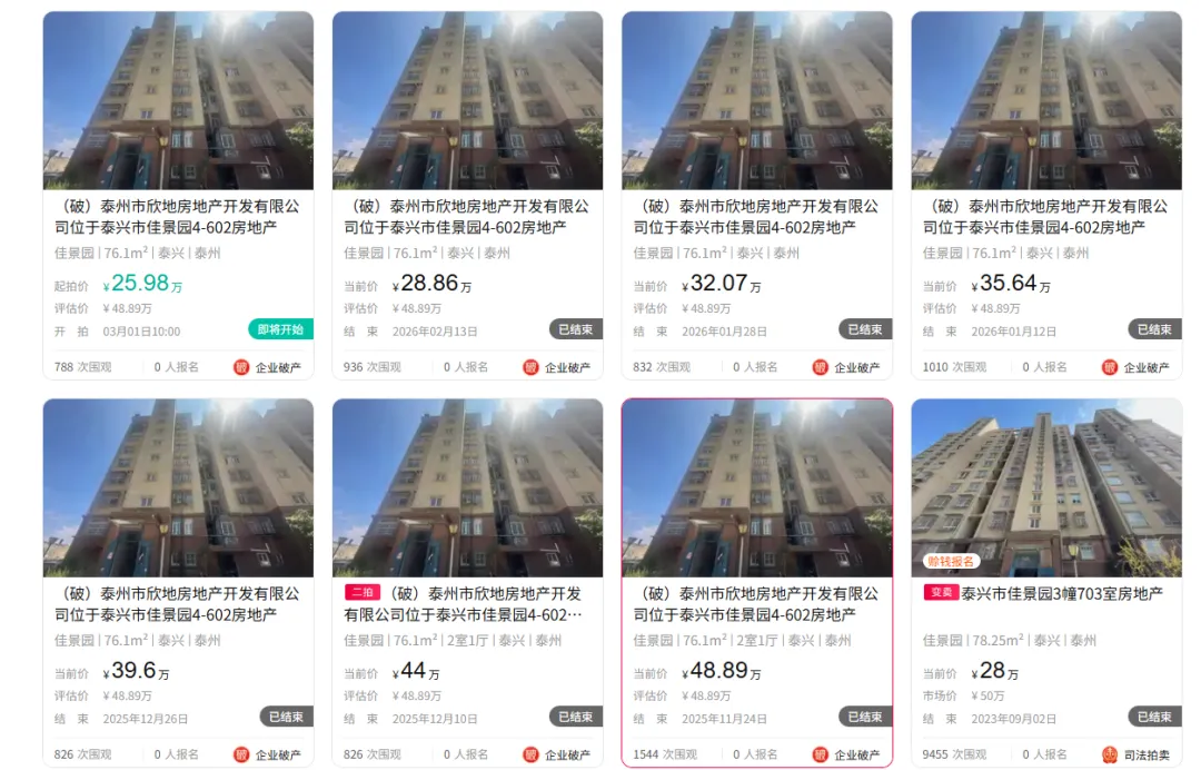 【悦泰兴】开发商破产,名下泰兴房产被拍卖!