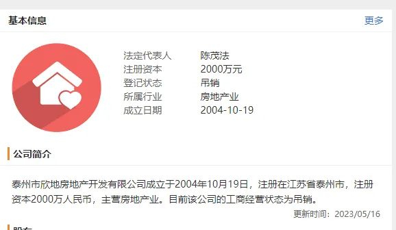 据悉,泰州市欣地房地产开发有限公司,该公司成立于2004年,