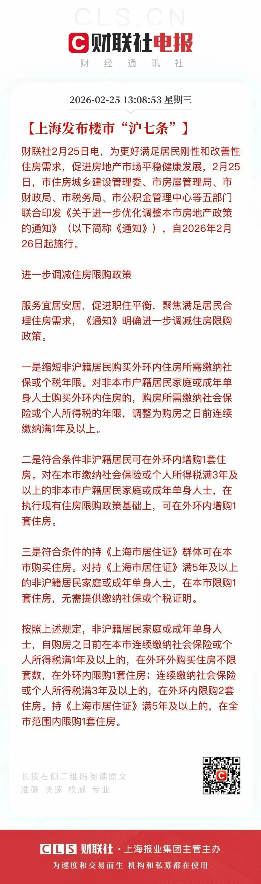 >2026年 2月25日 上海房产新政