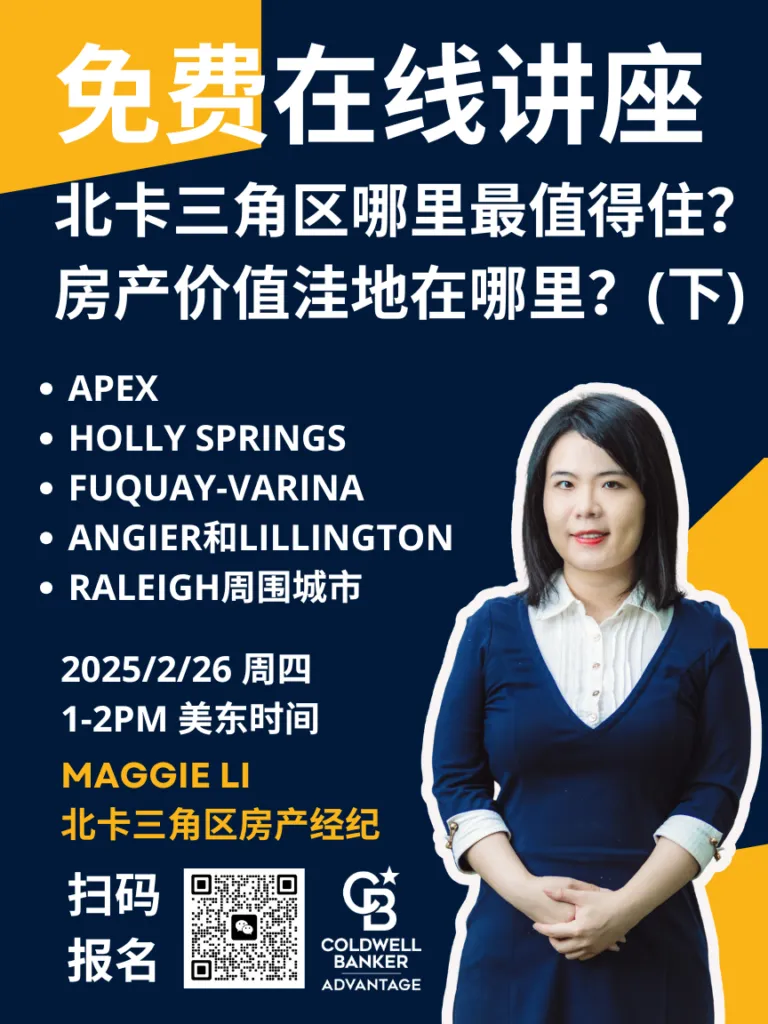 主讲人:Maggie Li北卡三角区房产经纪Coldwell Banker Advantage