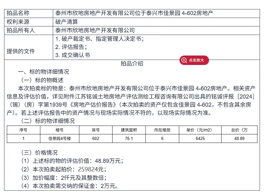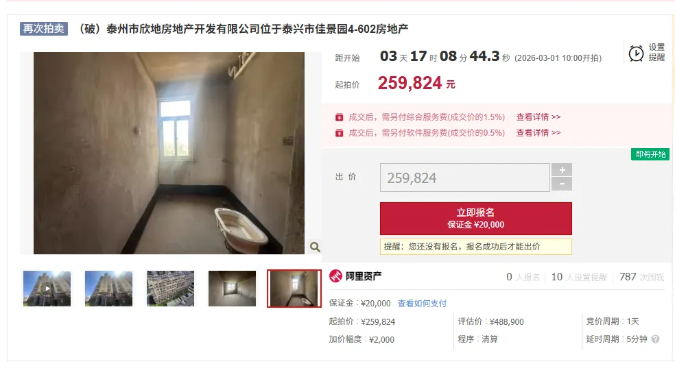 >开发商破产,名下泰兴房产被拍卖!