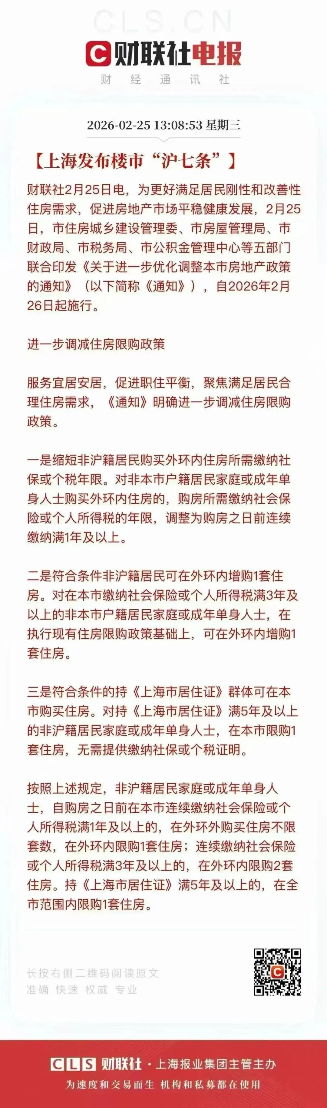 就在下午,上海发布了新的房产政策,称为“沪七条”。