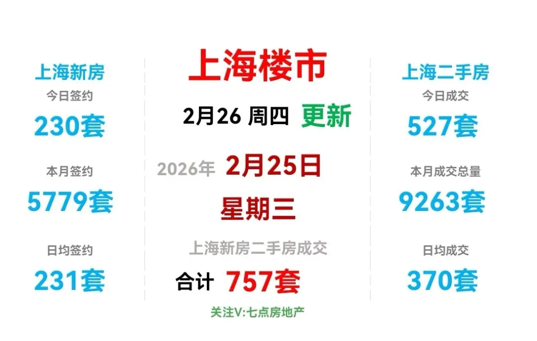 昨日(2月25日,周三),上海新房和上海二手房成交量合计757套。