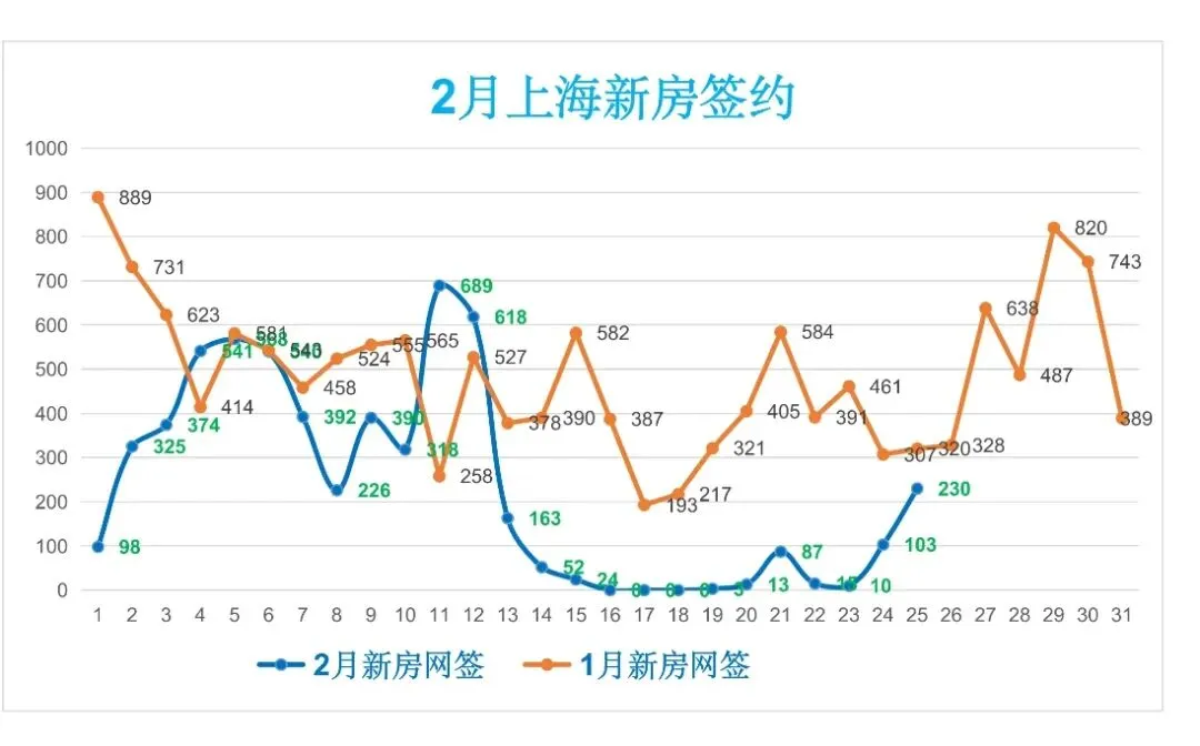 2月22日 周日,上海新房和上海二手房成交量合计25套