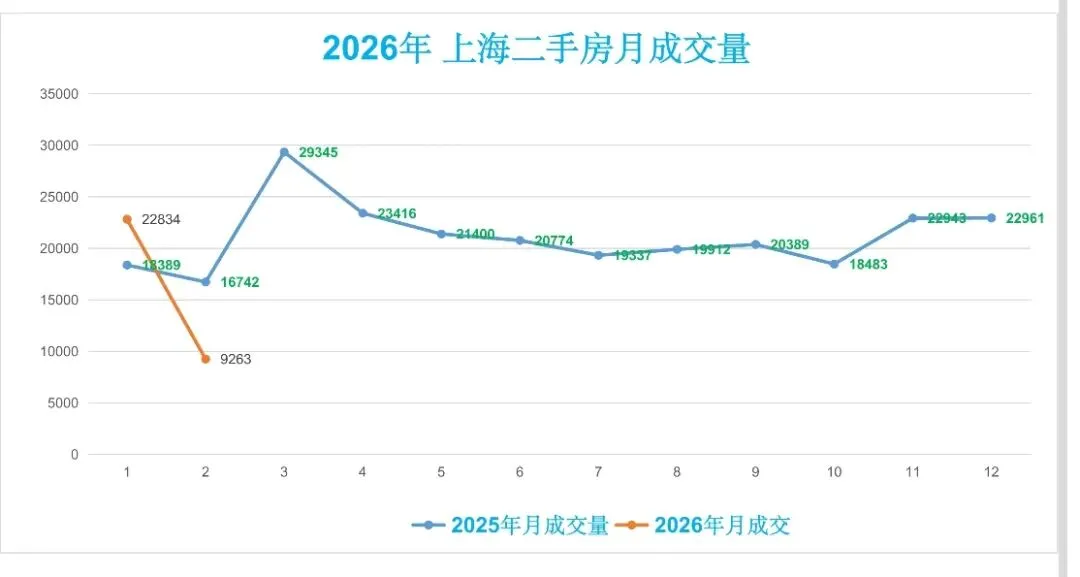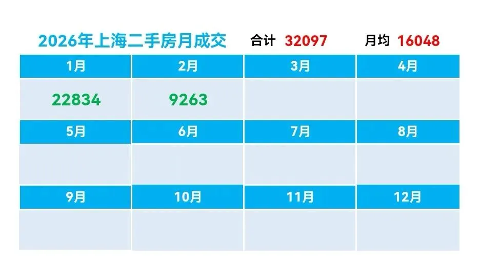 ♻️截止2026年2月25日,2025年上海二手房成交量合计254091套,月均21174套。
