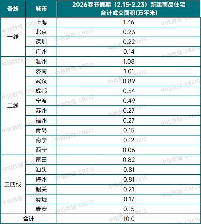 根据中指数据,重点21城春节假期(2月15日至2月23日)新建商品住宅共网签成交10万平方米,日均成交量与去年春节基本持平。看似平淡的数据背后,实则暗流涌动,为紧随其后的传统楼市“小阳春”拉开了蓄势的序幕。