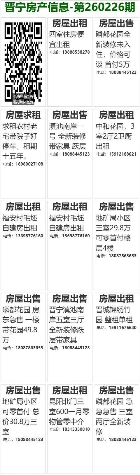 【晋宁本地】房产信息,2月26日更新