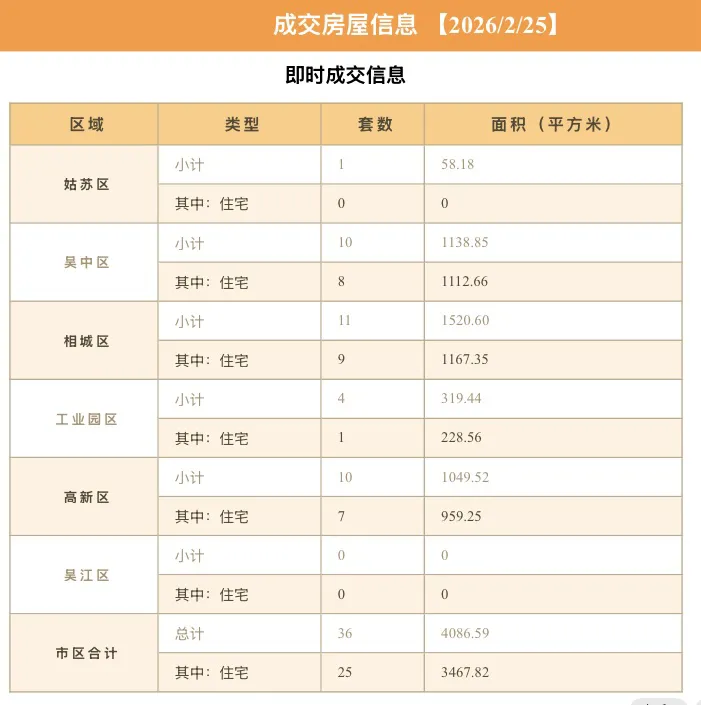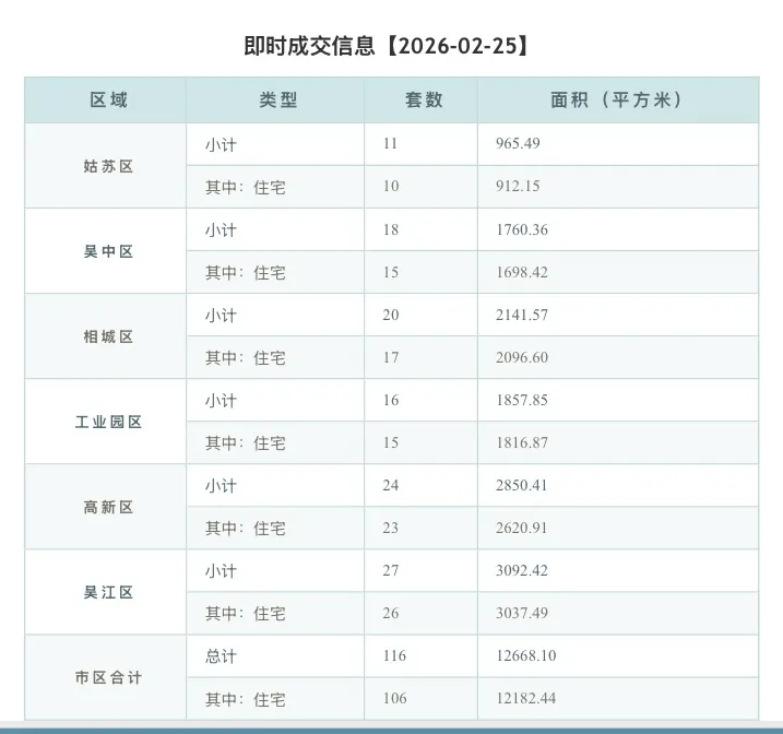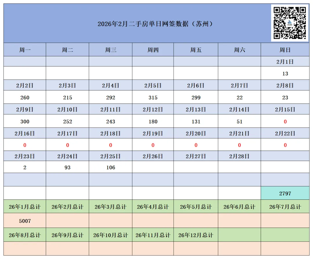 本月截至2月25日(周三),苏州六区住宅累计网签【3405套】,其中二手房累计网签【2797套】、新房累计网签【608套】。