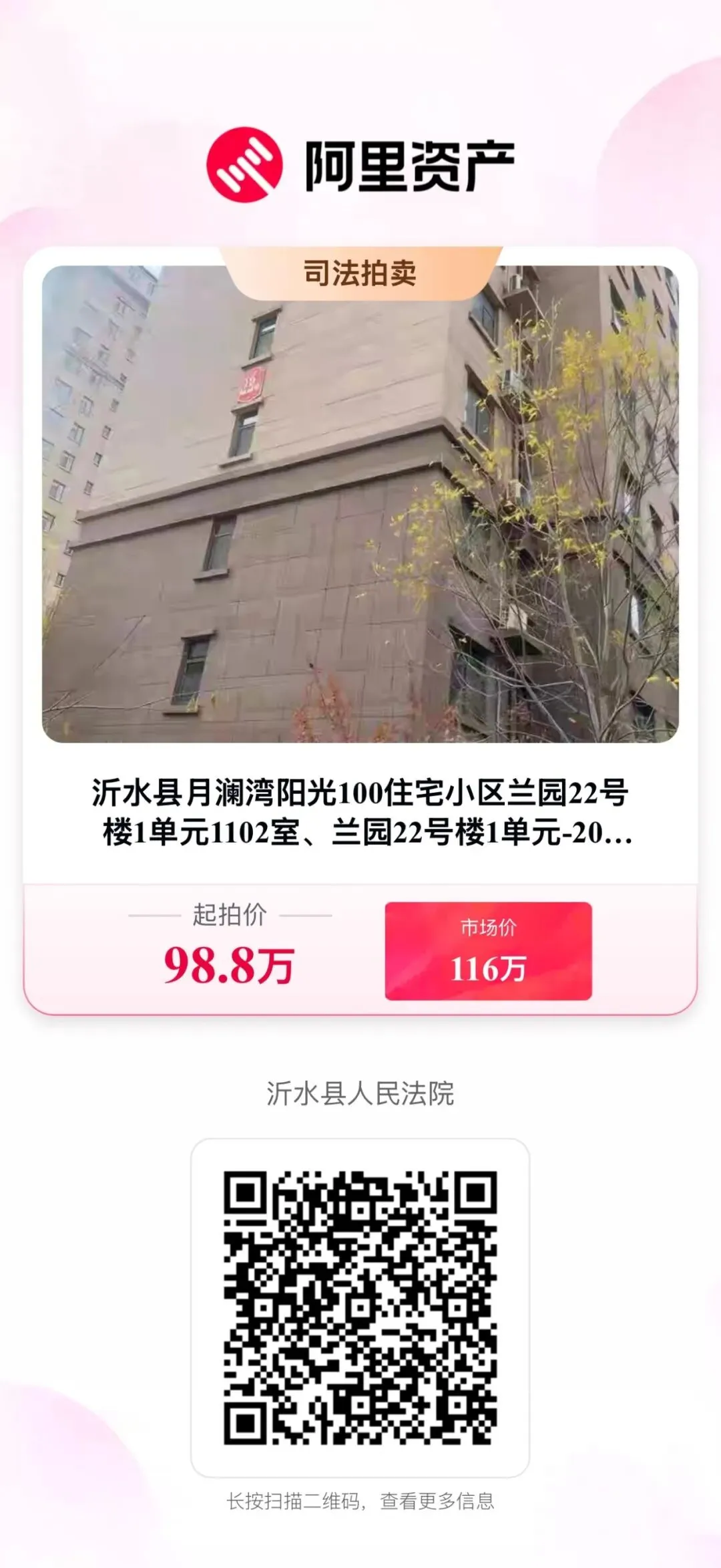 拍卖标的:沂水县月澜湾阳光100住宅小区兰园22号楼1单元1102室、兰园22号楼1单元-204室、兰园地下车库北区-1-1014室