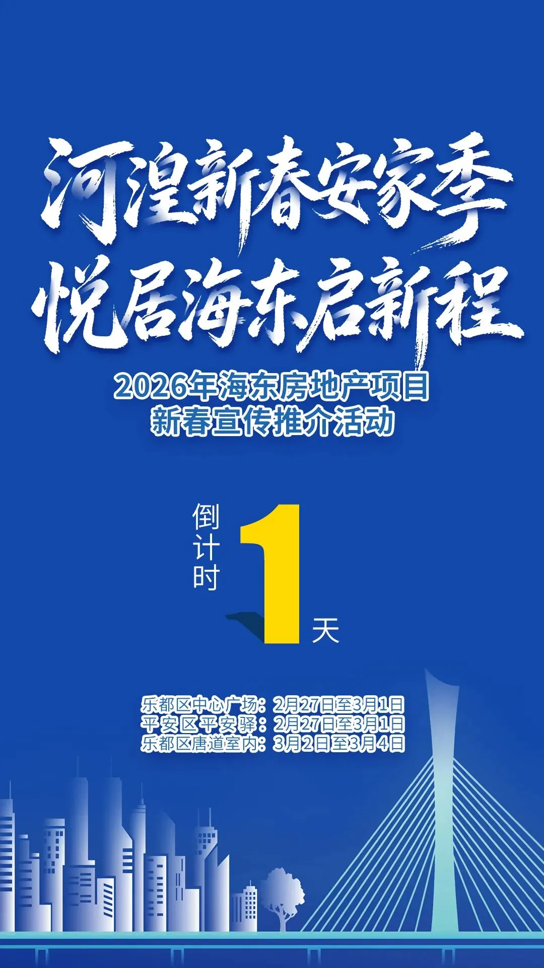 马年春意浓,置业正当时。2月27日—3月3日,海东市重磅推出“河湟新春安家季 悦居海东启新程”房地产项目新春宣传推介活动,乐都区、平安区双城联动,三场主题推介接力启幕,为市民与返乡家庭献上政策优、房源好、体验佳的一站式购房盛宴,让安家更省心、置业更安心。