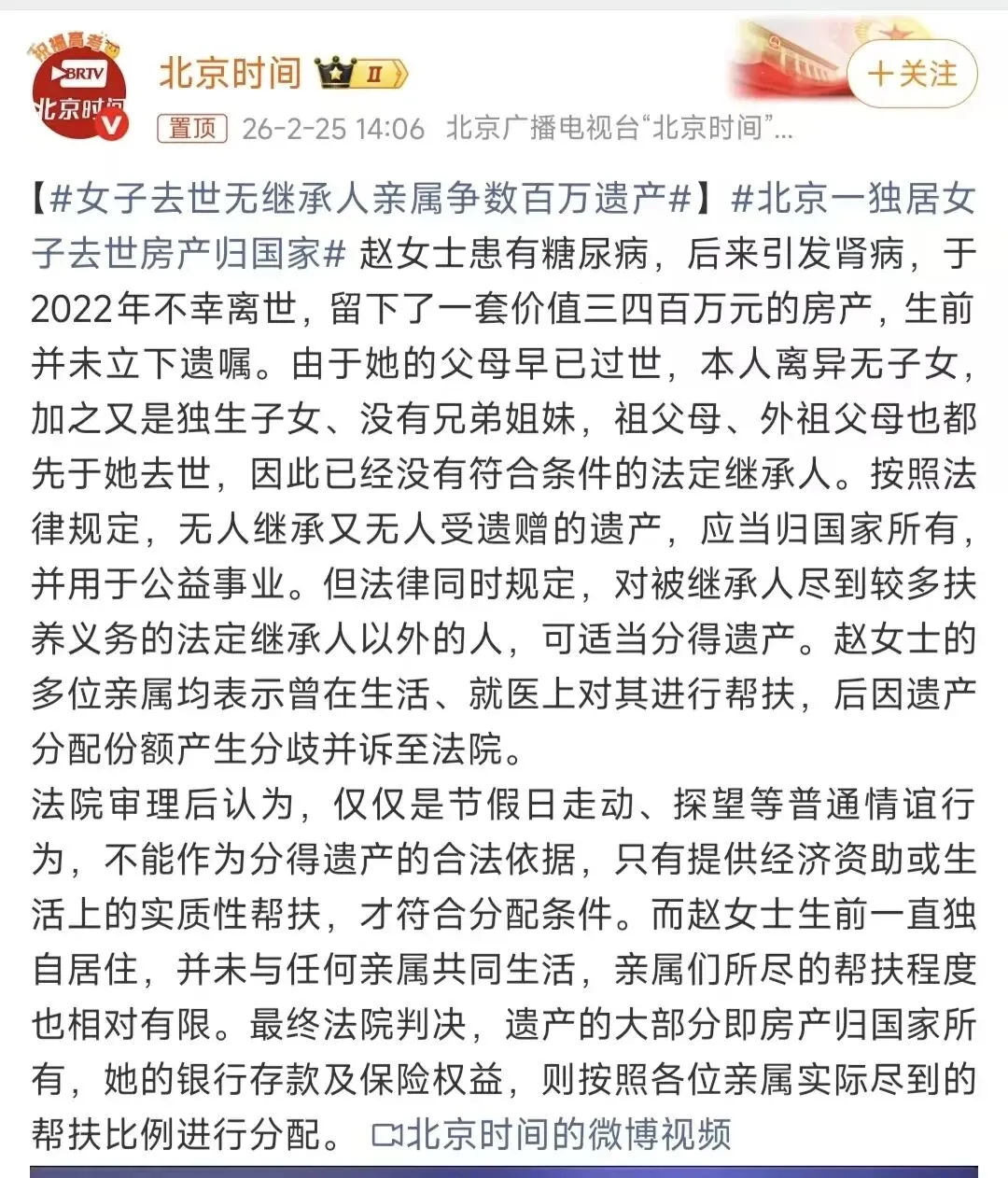 昨天刷那个独居女的新闻,下面有个高赞评论说,我活着的时候没人管我,死了也别想沾我的光。话糙理不糙。