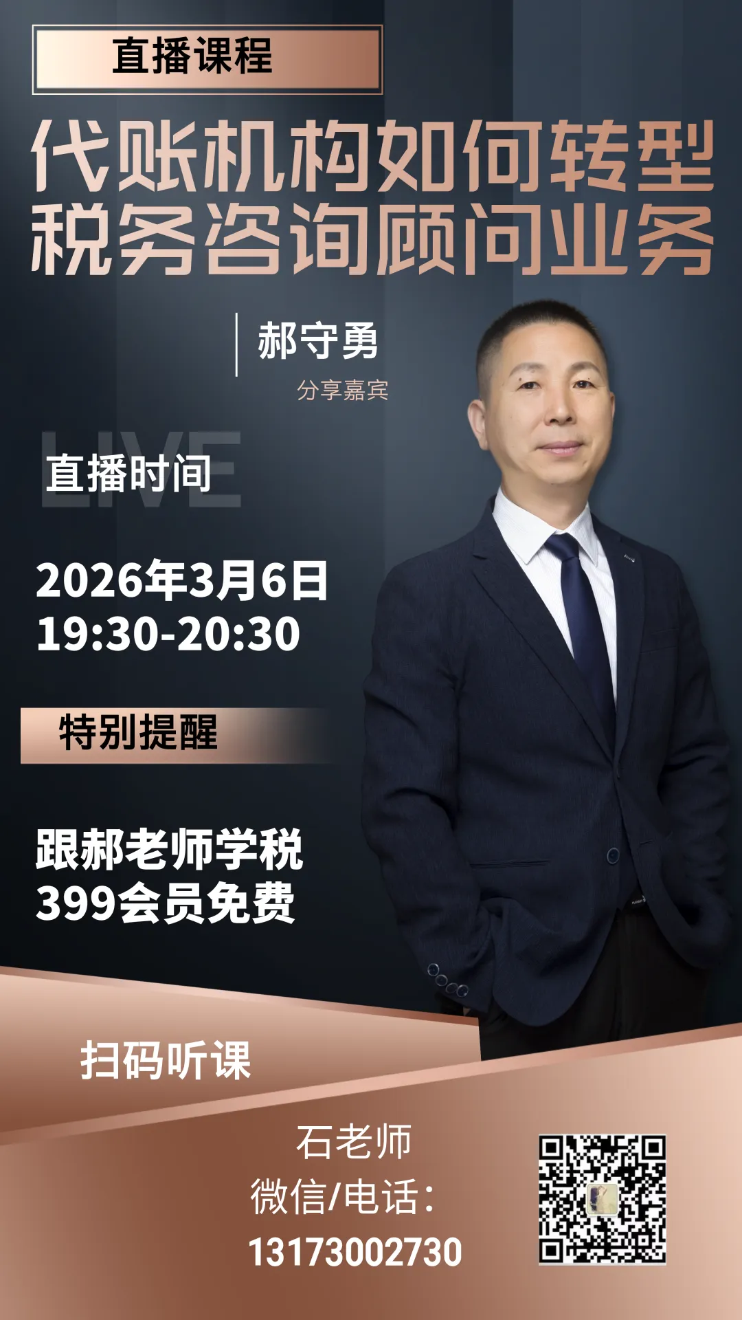 直播课程:《代账机构如何转型税务咨询顾问业务》