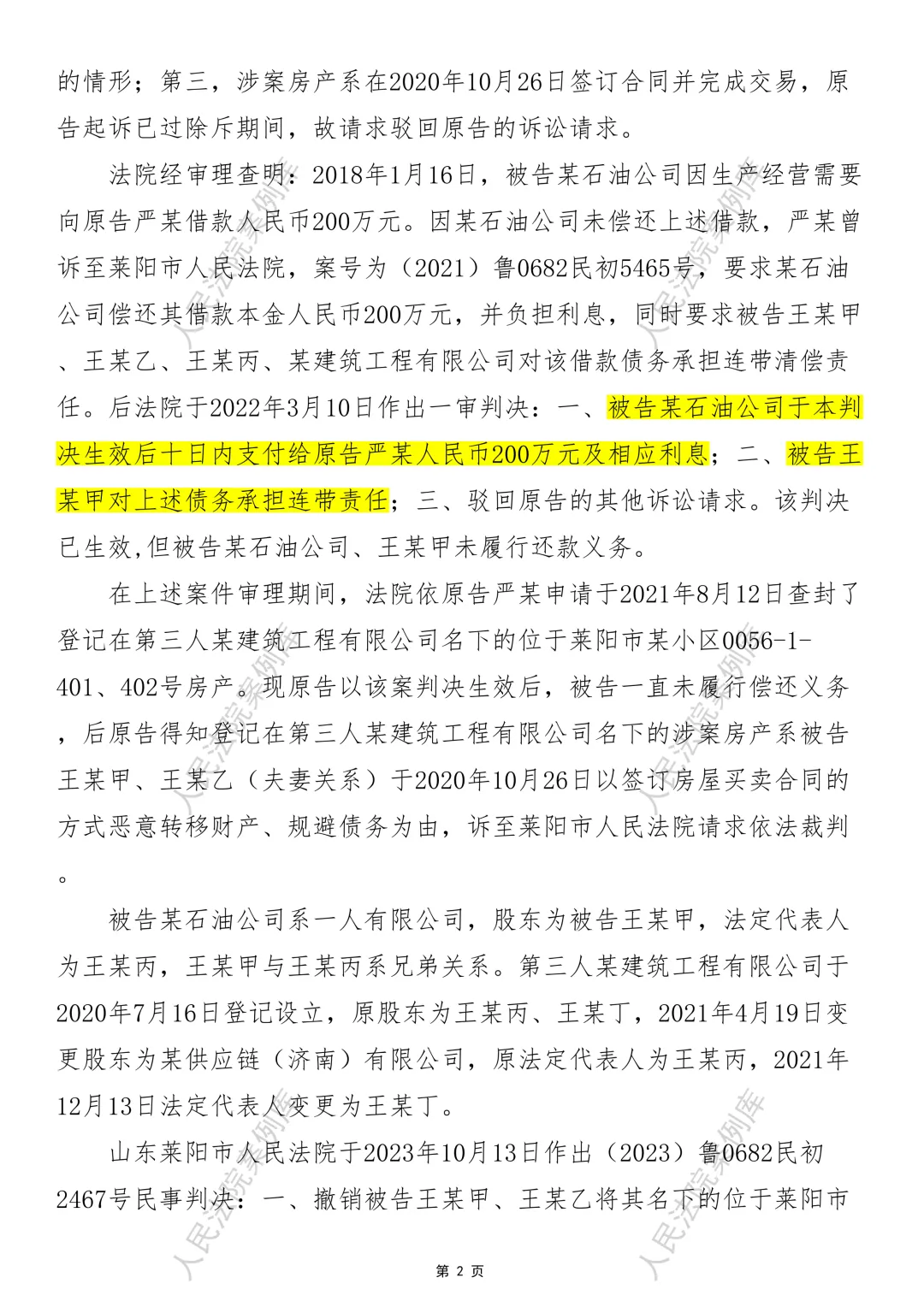 【彭律实务】债务人为逃避债务将名下房产以无偿买卖方式转移至亲属名下?人民法院案例库案例:撤销该转让行为!