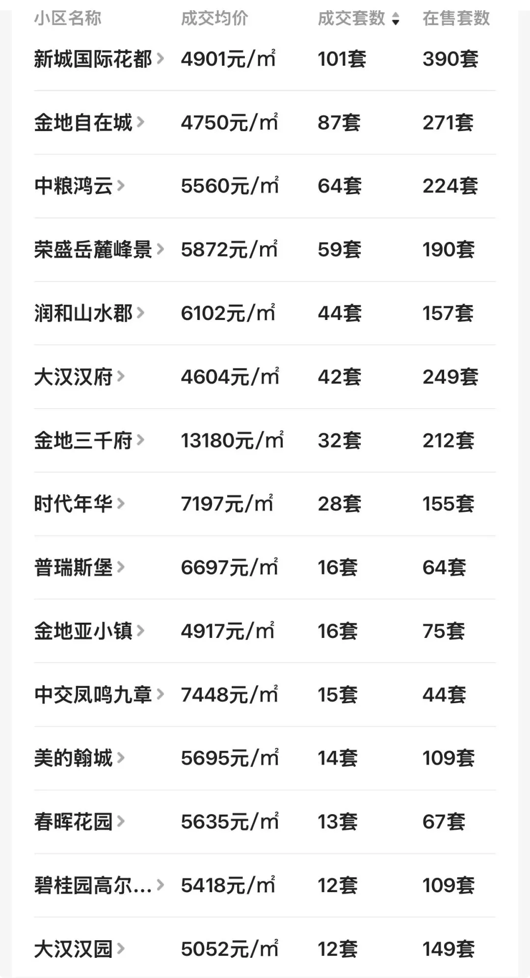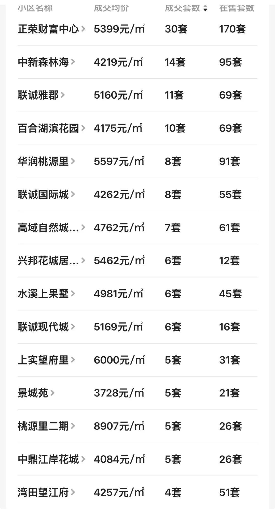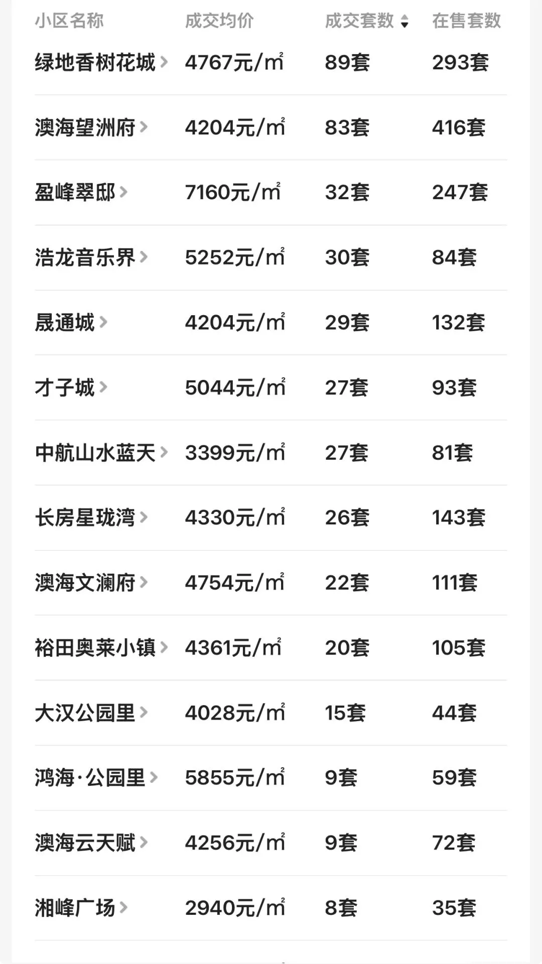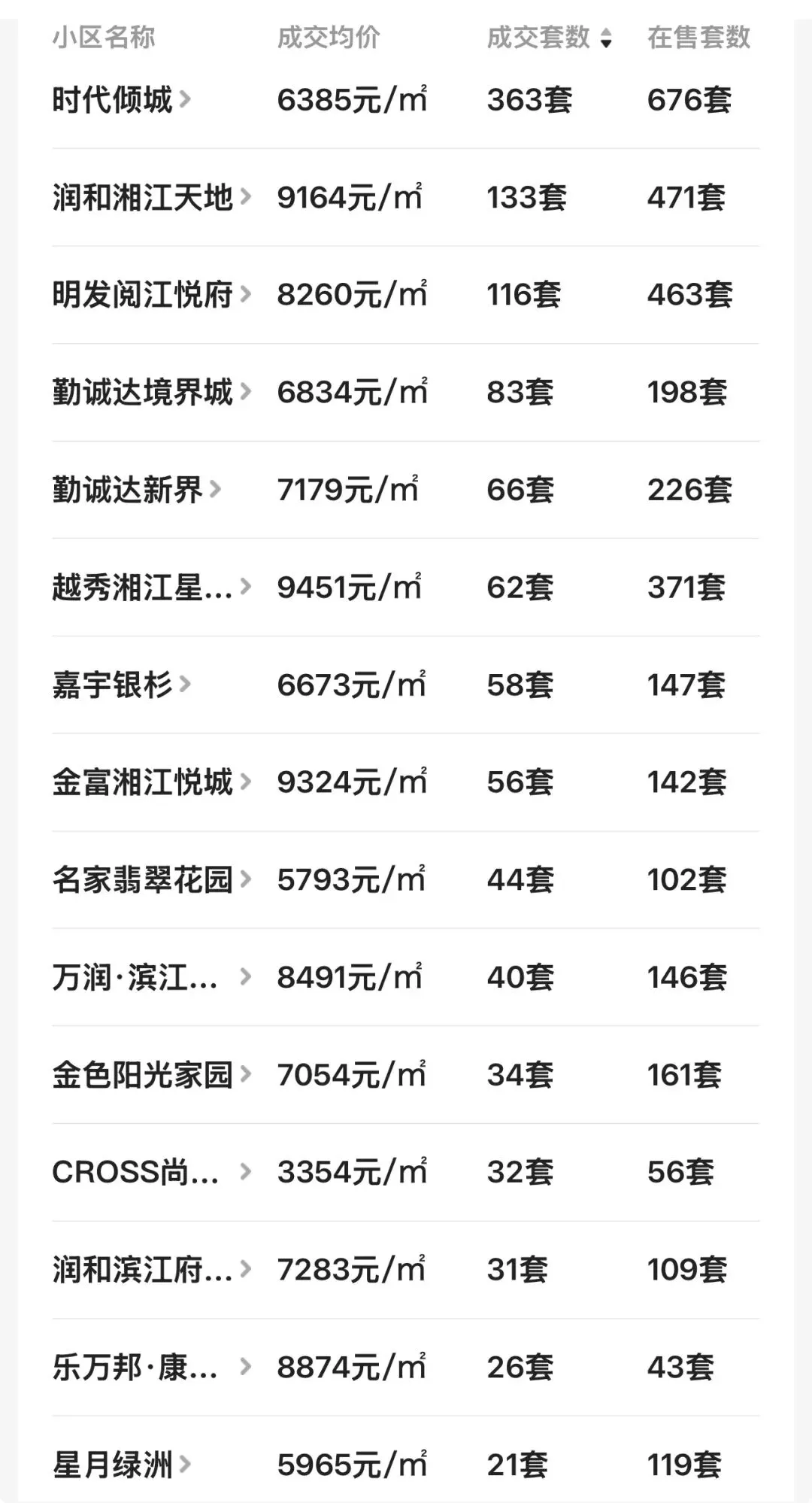 还有明发阅江悦府,一年时间卖了116套;珠江东方明珠,一年时间卖了100套;澳海澜庭一年时间卖了95套......甚至,远在望城经开区的绿地香树花城,一年时间也卖了89套。论流通性,金星北和月亮岛的热门二手小区非常俏,换手比率超过了太多市区楼盘。具体请看望城区二手房小区近一年的成交均价+成交套数等数据:观沙岭最后一块纯住宅好地,绿城前所未见的新规户型,得房率120%!有红头文件配套入读长沙市实验第二小学+南雅求实中学。置业顾问:严朦-18472888881(微信同号)。媲美八方小区的顶级双名校学区房(预计配套入读长沙市一中初中本部+长沙市一中附属小学本部)。主推约120-170平新规产品,置业顾问:邓伟15580982009(微信同号)。