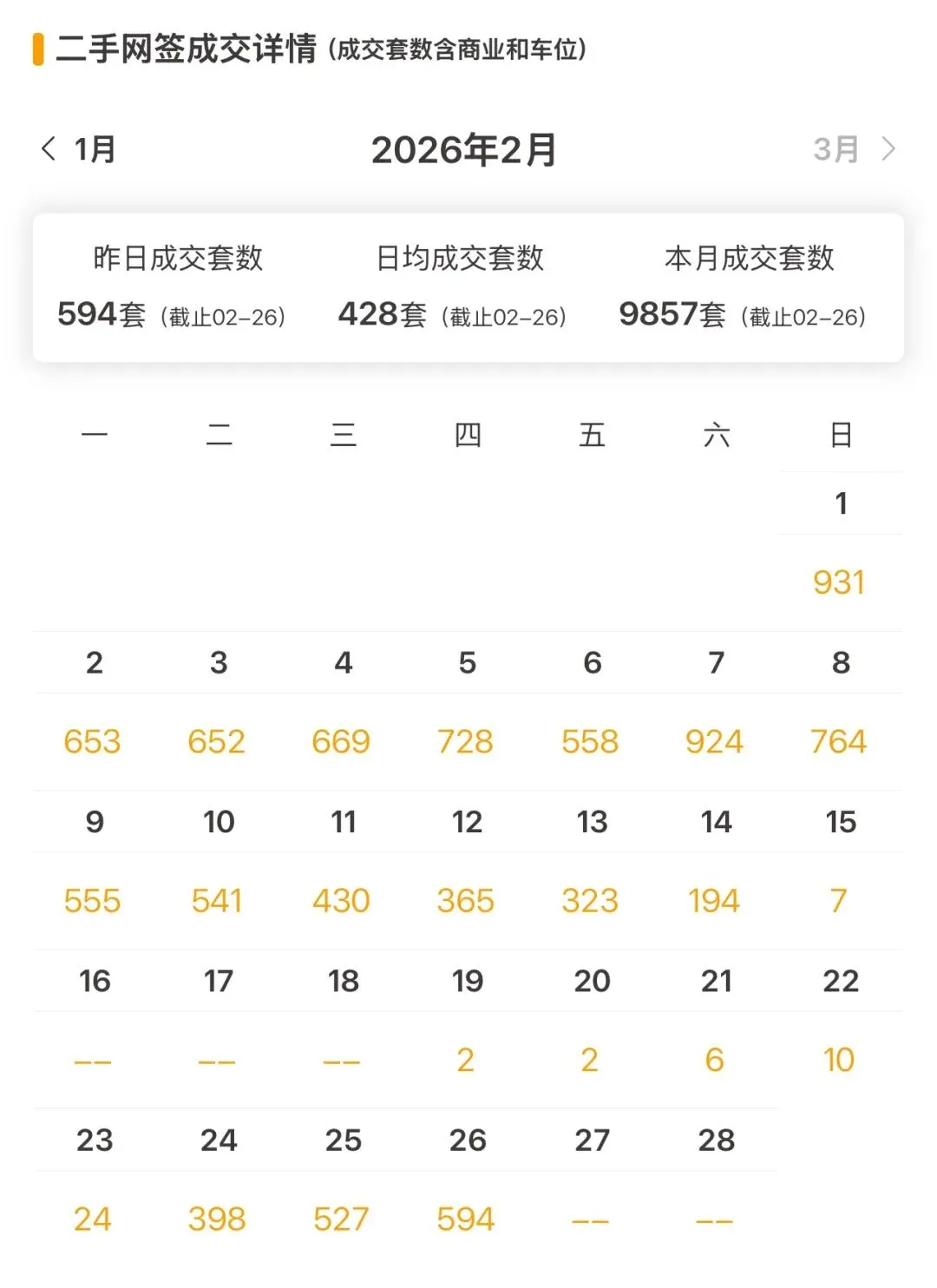 上海二手房最新成交量:昨日(2月26日)网签594套(含住宅、商业、车位等)。