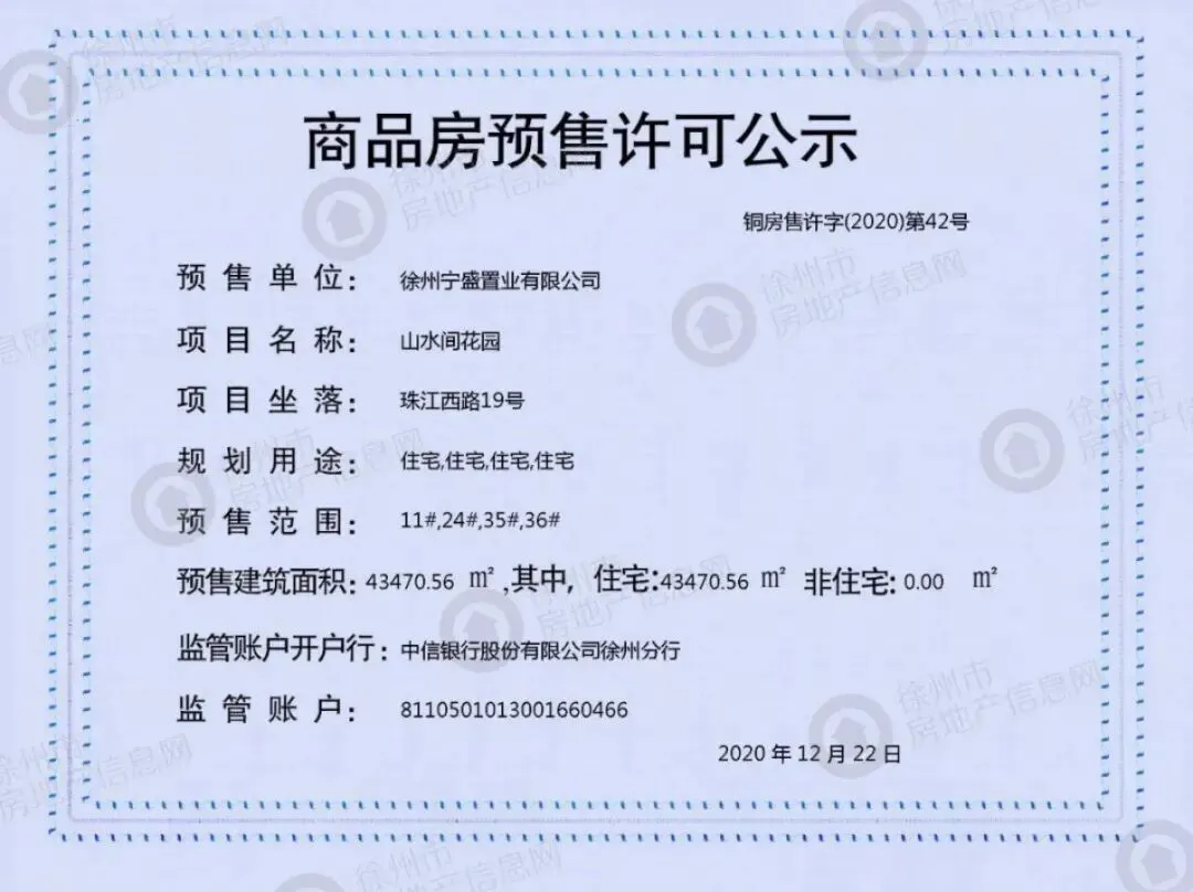 12月22日招商万科山水间项目领取了预售证,11,24,35,36号楼4栋18层高层,共计360套房源,整体均价15201元/㎡。