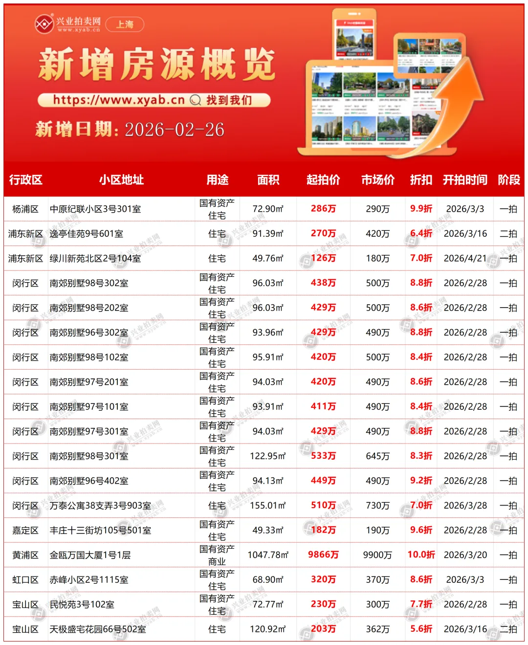 上海拍卖房产昨日新增详情