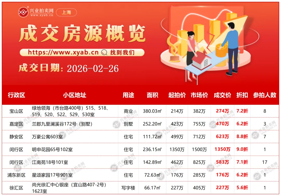 上海拍卖房产昨日成交详情