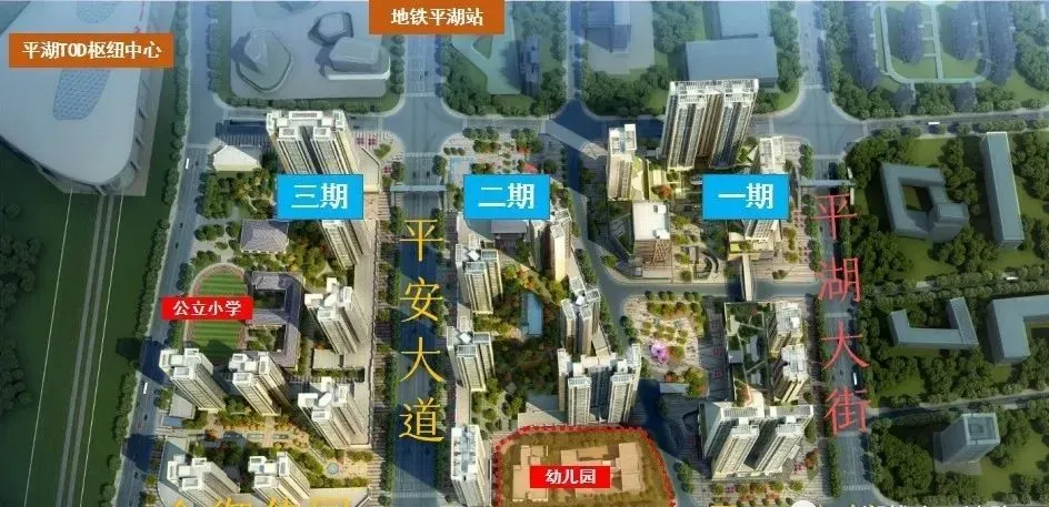 佳兆业广场位于平湖街道核心地段——平湖大街与守珍街交汇处,总占地约**11.85万㎡**,总建筑面积达**64.8万㎡**,分三期开发,是集**高端住宅、商务公寓、行政办公、集中商业MALL**于一体的超级综合体。