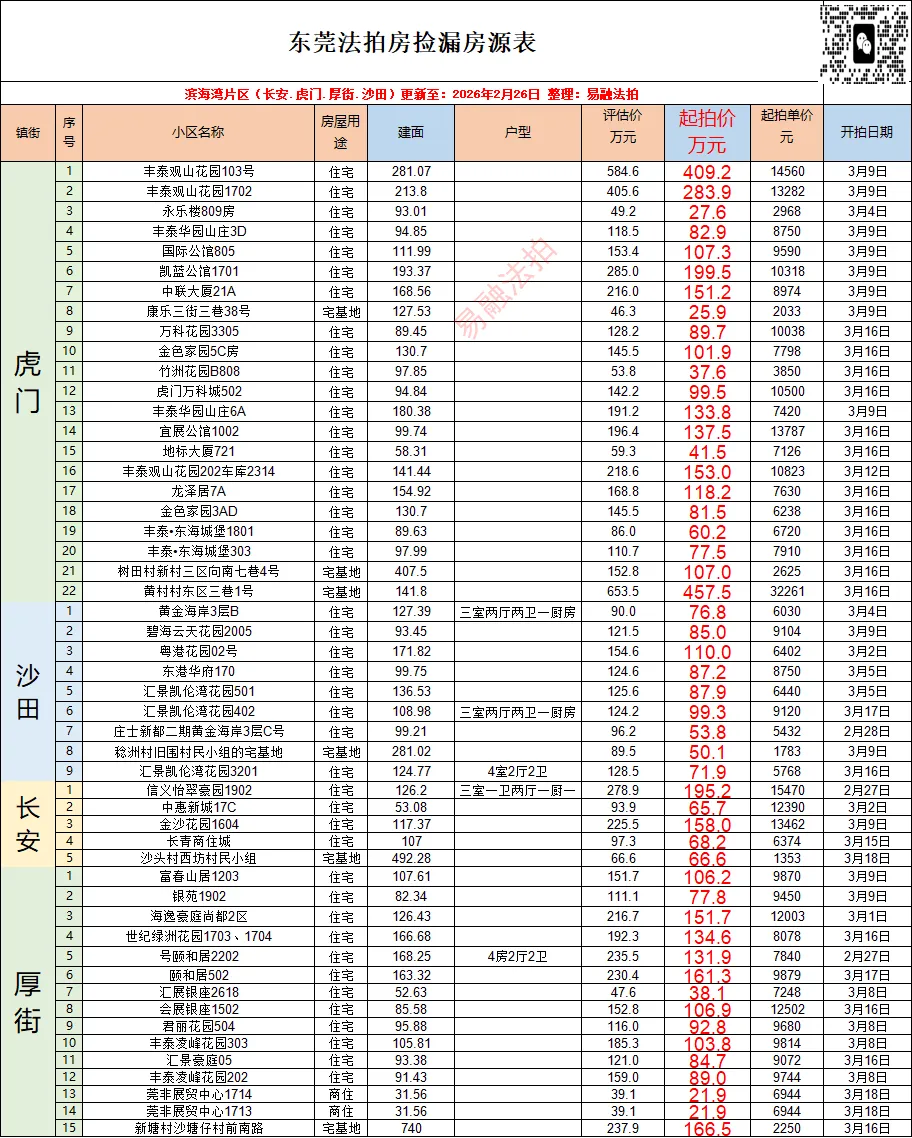 ✅ 免费获取:最新法拍房捡漏清单(含起拍价、面积、小区、开拍时间)