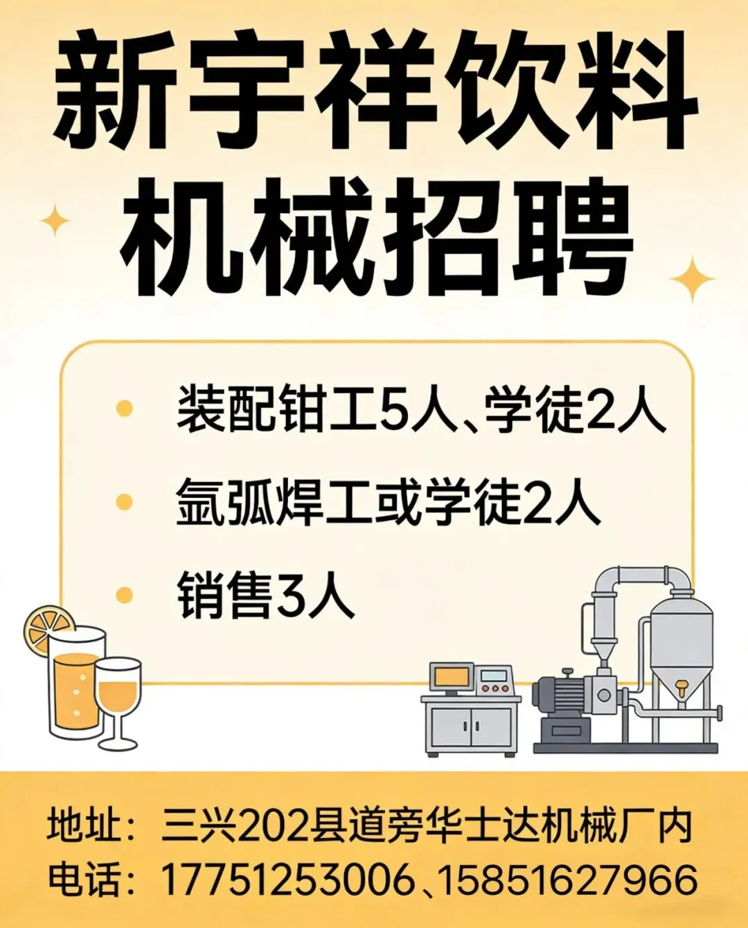 ❷饮料机械装备钳工:5名