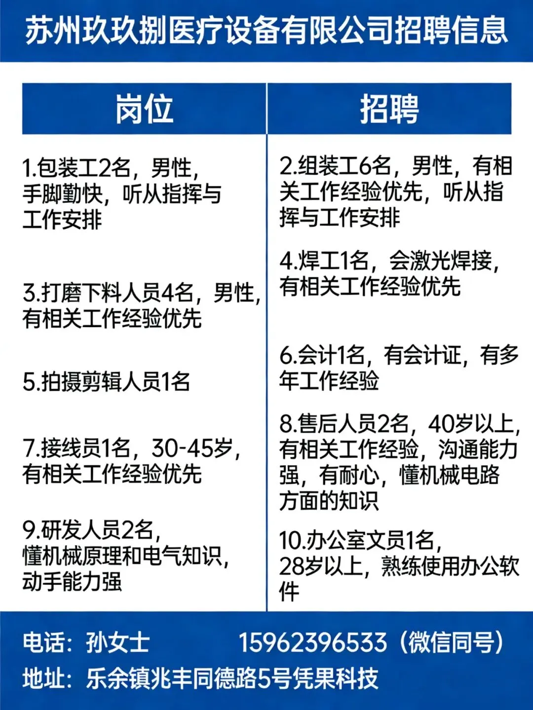 【联系电话】孙女士 15962396533(微信同号)