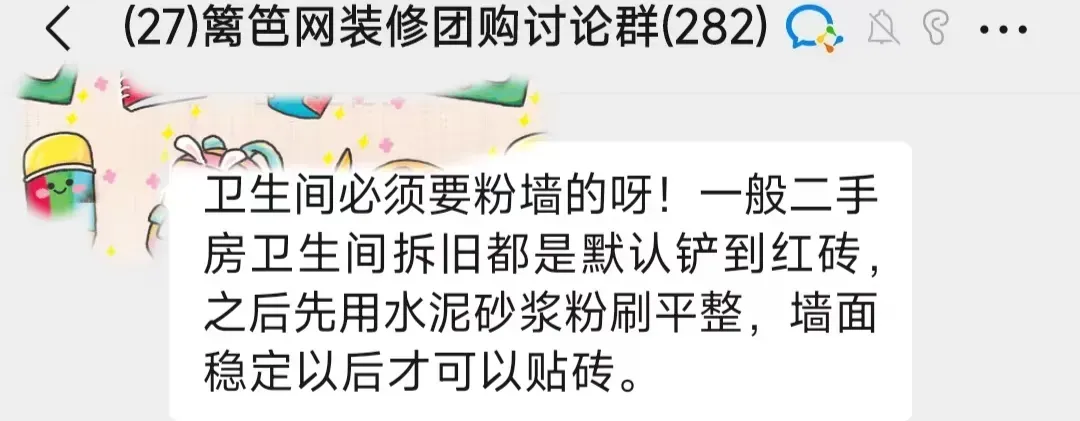 另外厨卫也建议拆旧时尽量铲到红砖后再用水泥砂浆粉平。
