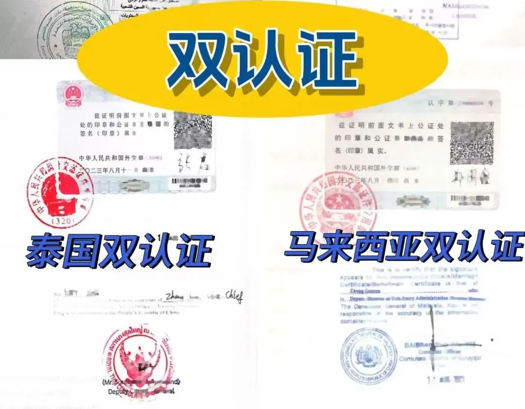 而像泰国、马来西亚、阿拉伯联合酋长国等,则需要做“领事认证”,即在公证处公证完成后要将公证书分别送往中国外事办即目的地国家驻华领事馆进行双重认证,也叫双认证(领事认证)。