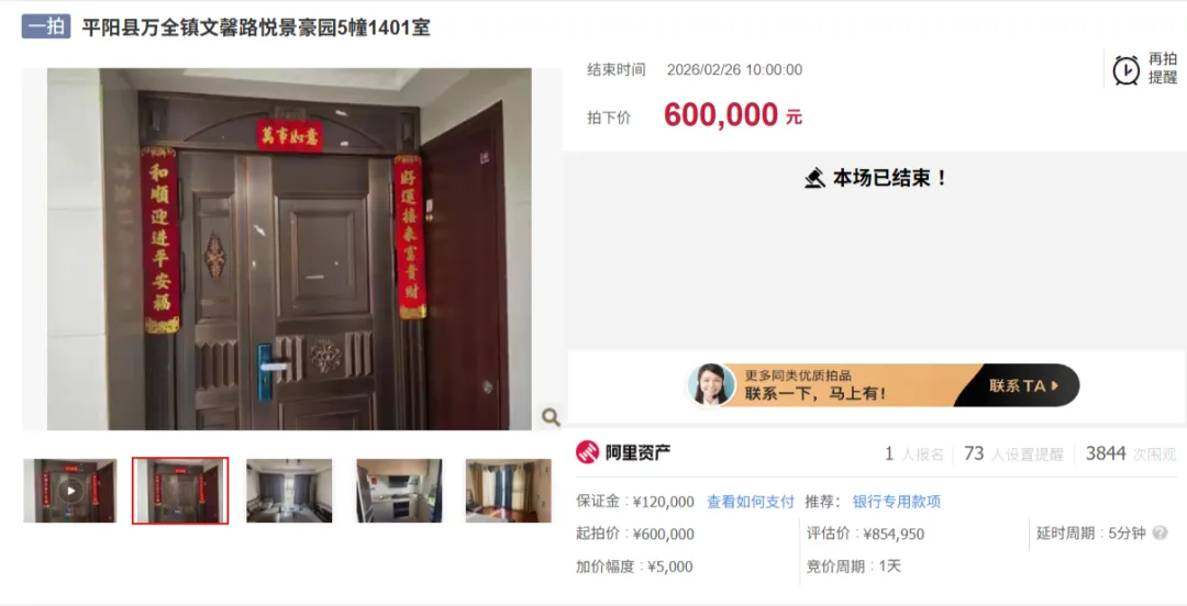 平阳万全134㎡安置房遭4人争抢,29.6万成交......