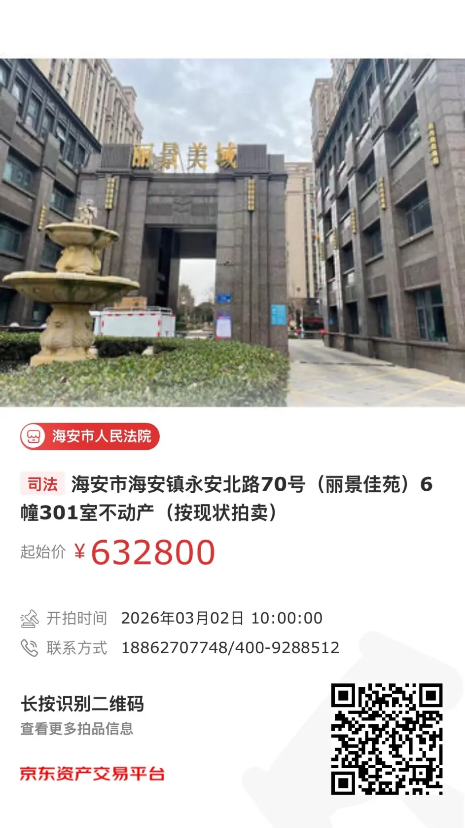 拍卖时间:2026年3月16日10时至2026年3月17日10时期间(竞价周期与延时除外)