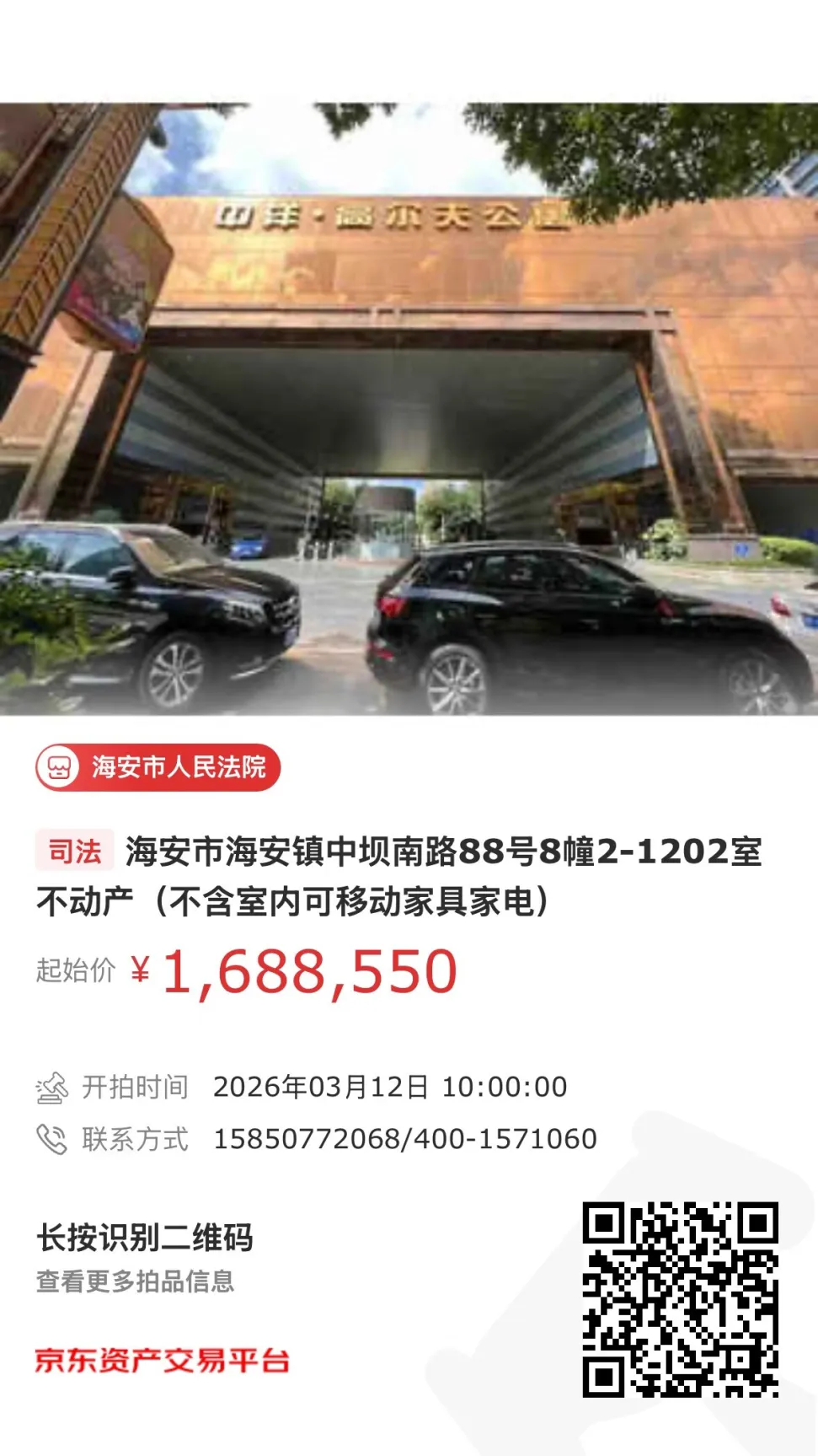 拍卖时间:2026年3月12日10时至2026年3月13日10时期间(竞价周期与延时除外)