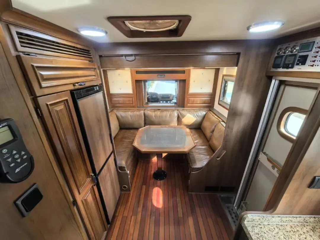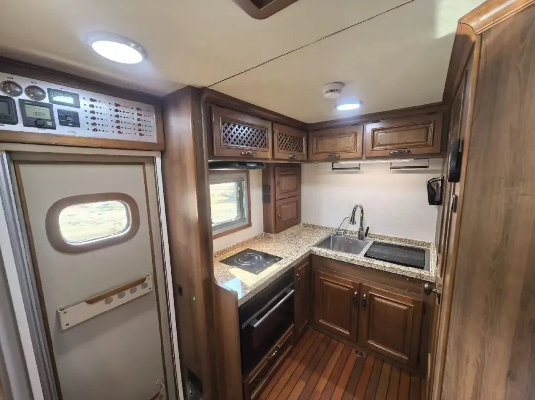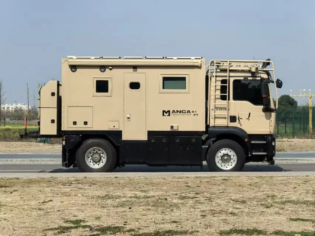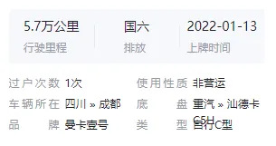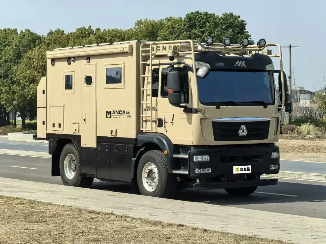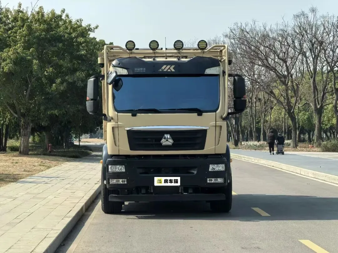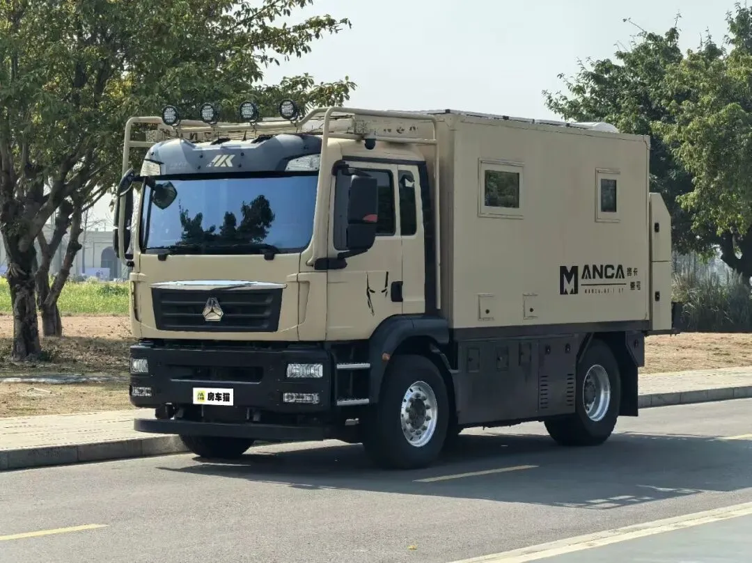 【车辆名称】:曼卡一号重卡房车【上牌时间】:2022年1月【公里数】:5.7万公里【过户情况】:过户次数一次,非营运【底盘名称】:重汽汕德卡【动力】:6.87T柴油发动机【驱动方式】:前置后驱【变速箱】:10速AMT自动挡【排放标准】:国六排放【核载人数】:5人【车身尺寸】:长:5995宽: 2546高:3575【水电配置】:24V800Ah锂电池,5000W逆变器,1200W太阳能,泓晟达静音发电机,300L清水箱,55L灰水箱,60L黑水箱【电器配置】:多美达底置冷暖空调,大森新风系统,麦克斯双向换气扇,156L塞特福德双开门冰箱,特鲁玛驻车燃油热水暖风一体机,索尼智能网络电视,Bose蓝牙音箱,西门子蒸烤一体微波炉,进口电磁炉,进口水槽洗碗机,多美达抽油烟机,莫博滚筒式洗衣机,电动升降餐桌,电动吊床【卫生间配置】:独立卫生间,进口陶瓷电动粉碎直排马桶,淋浴花洒,陶瓷洗漱盆,化妆镜,卫生间换气扇【户外配置】:电动五级踏步,户外电动遮阳棚,18500磅后绞盘,电动升降摩托车架(带后储物箱和后挂备胎)【其它配置】:多功能方向盘,倒车影像,中控大屏,主副驾汽动座椅,六气囊减震,高位射灯,三点式悬浮副车架设计,行驶更舒适。
