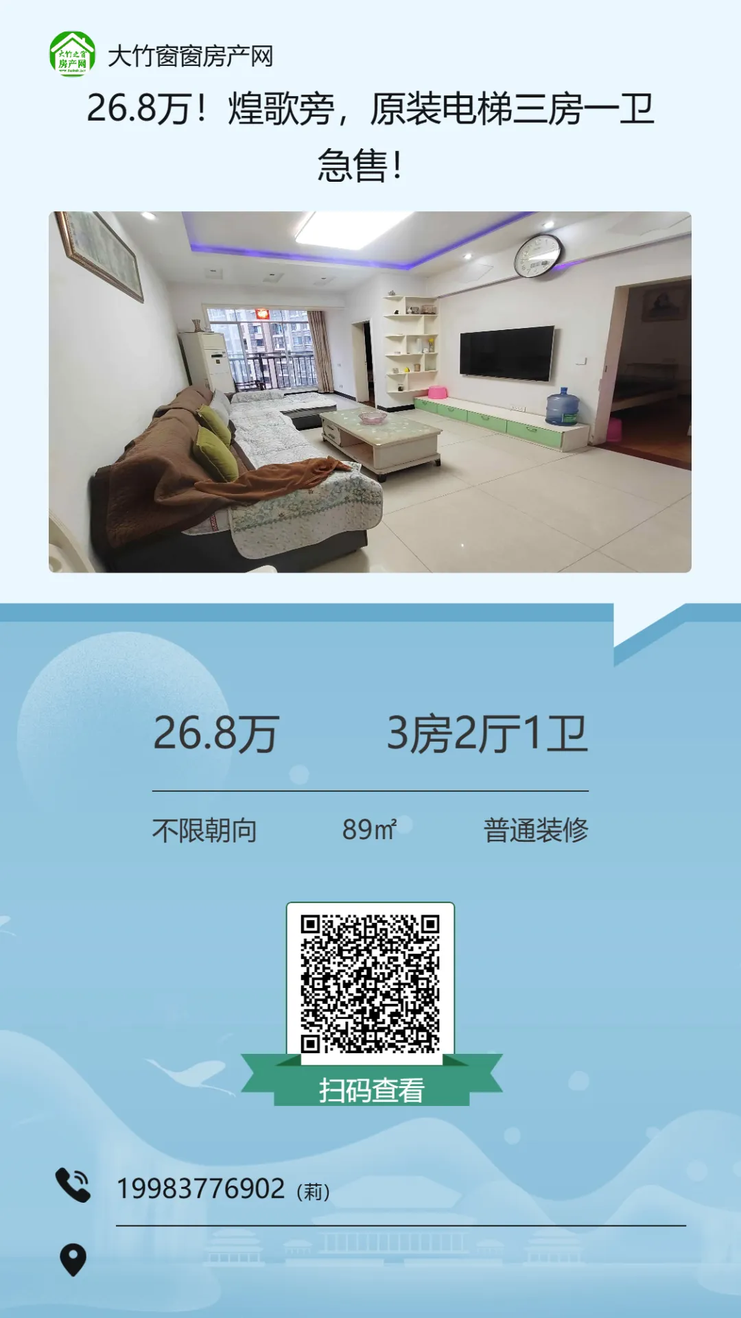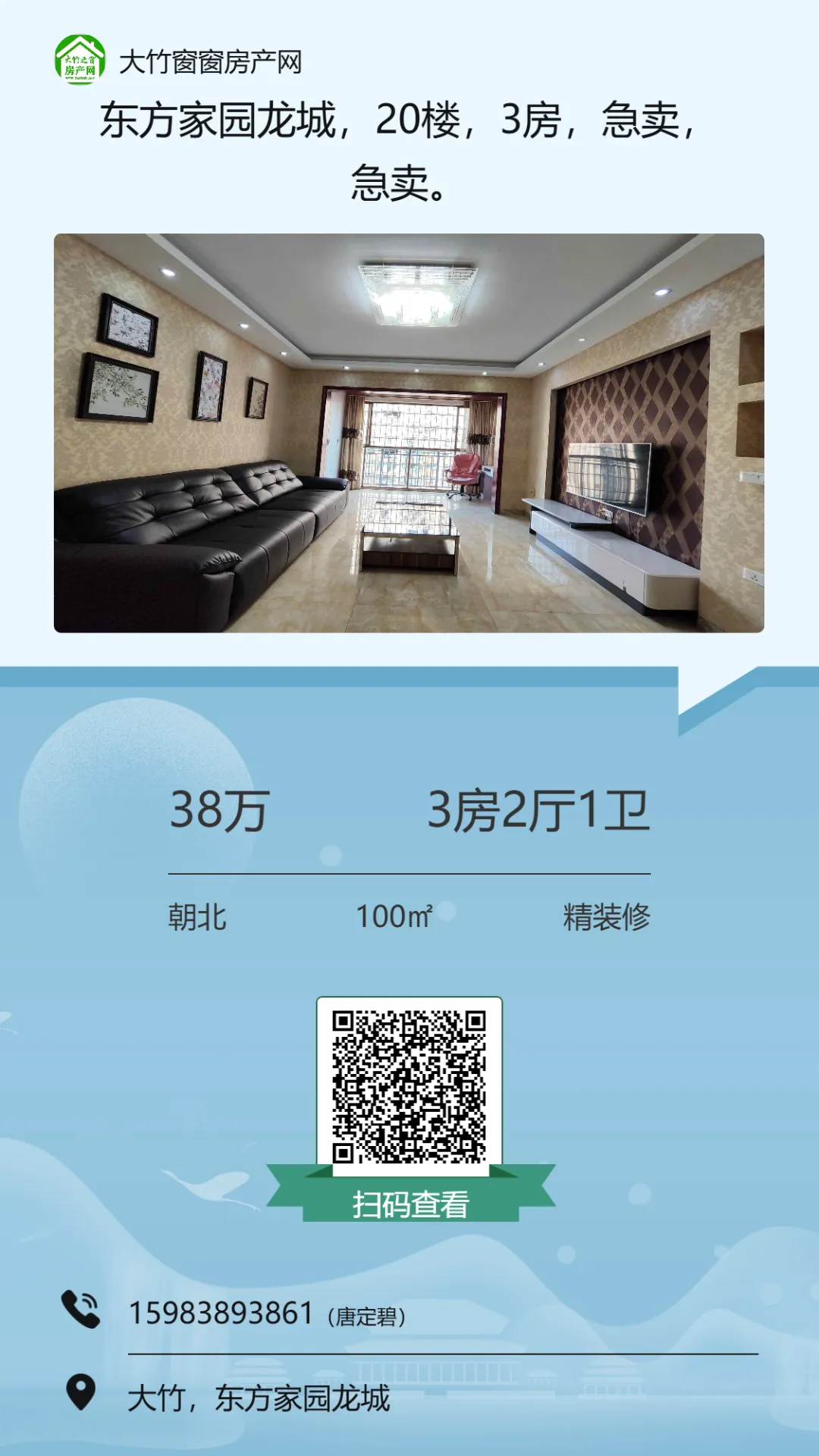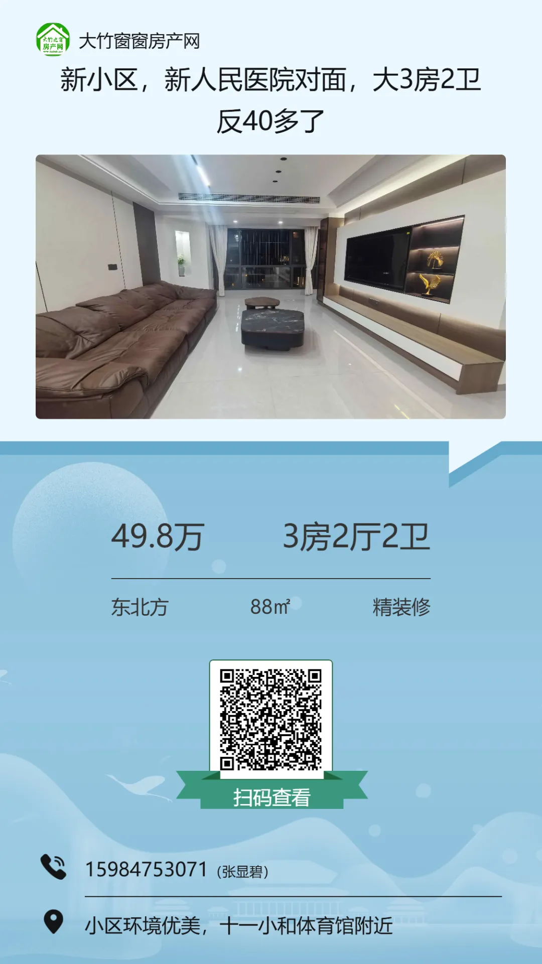 【大竹房产】精装三房,业主急售,单价三千不到