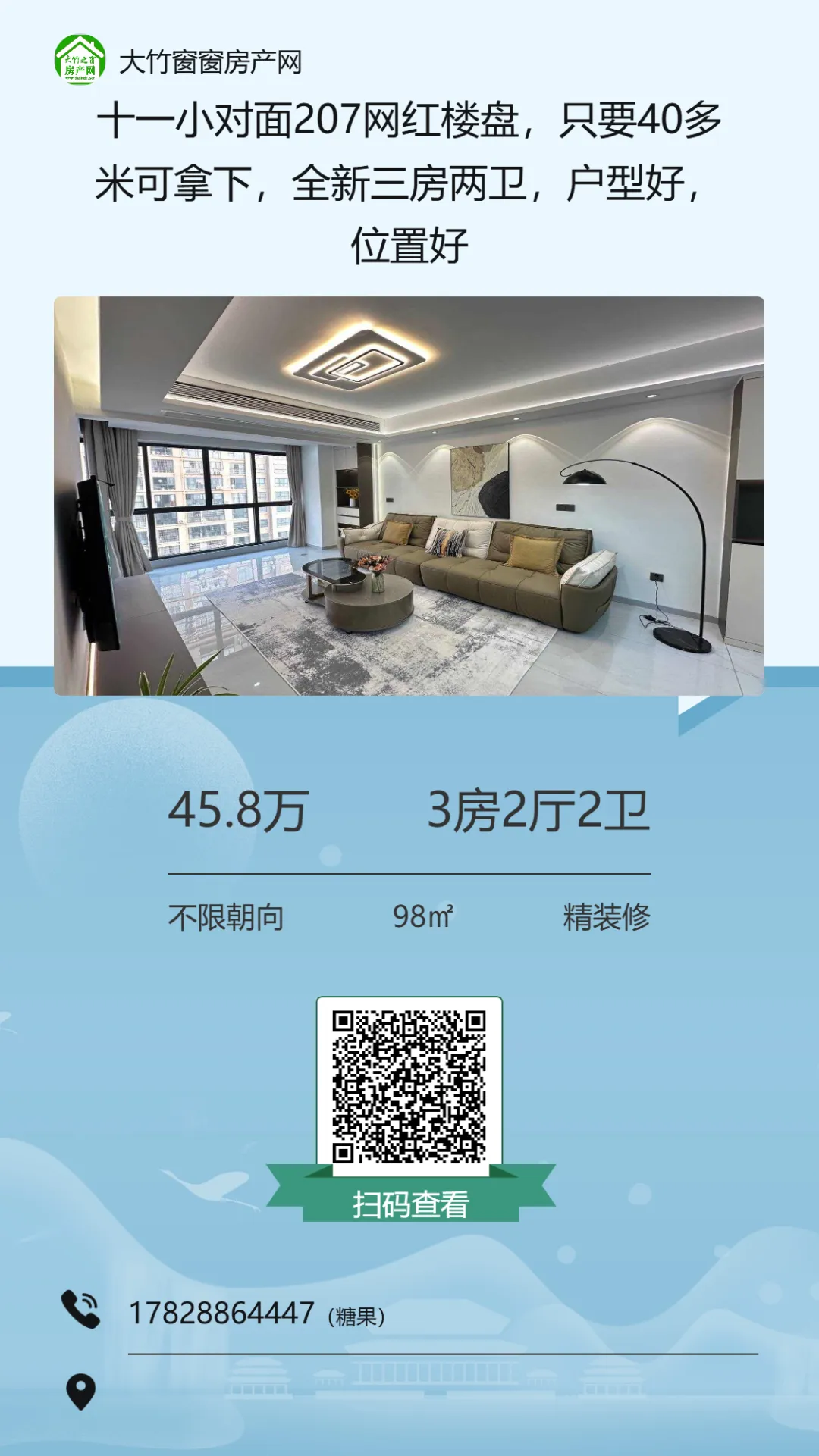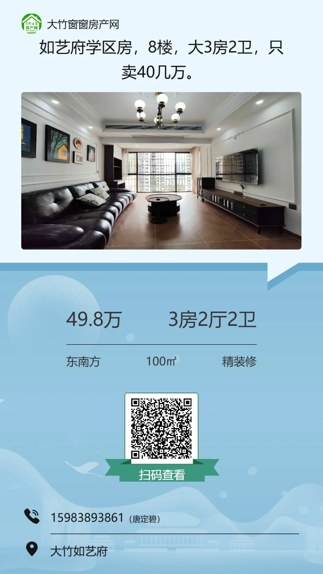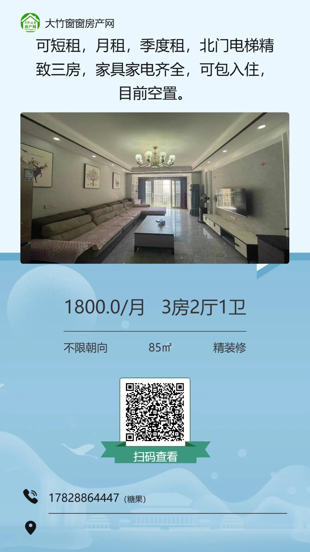 【大竹房产】精装三房,业主急售,单价三千不到