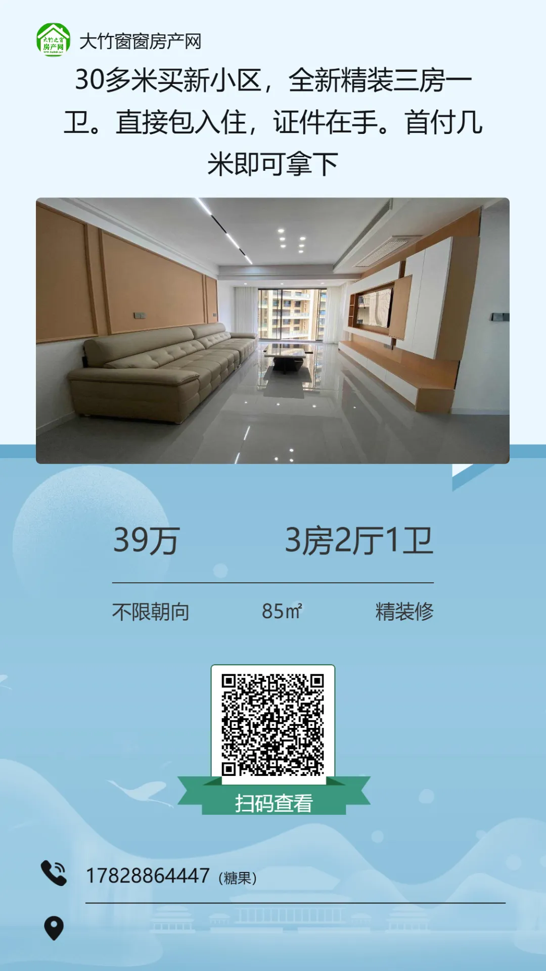 >【大竹房产】精装三房,业主急售,单价三千不到