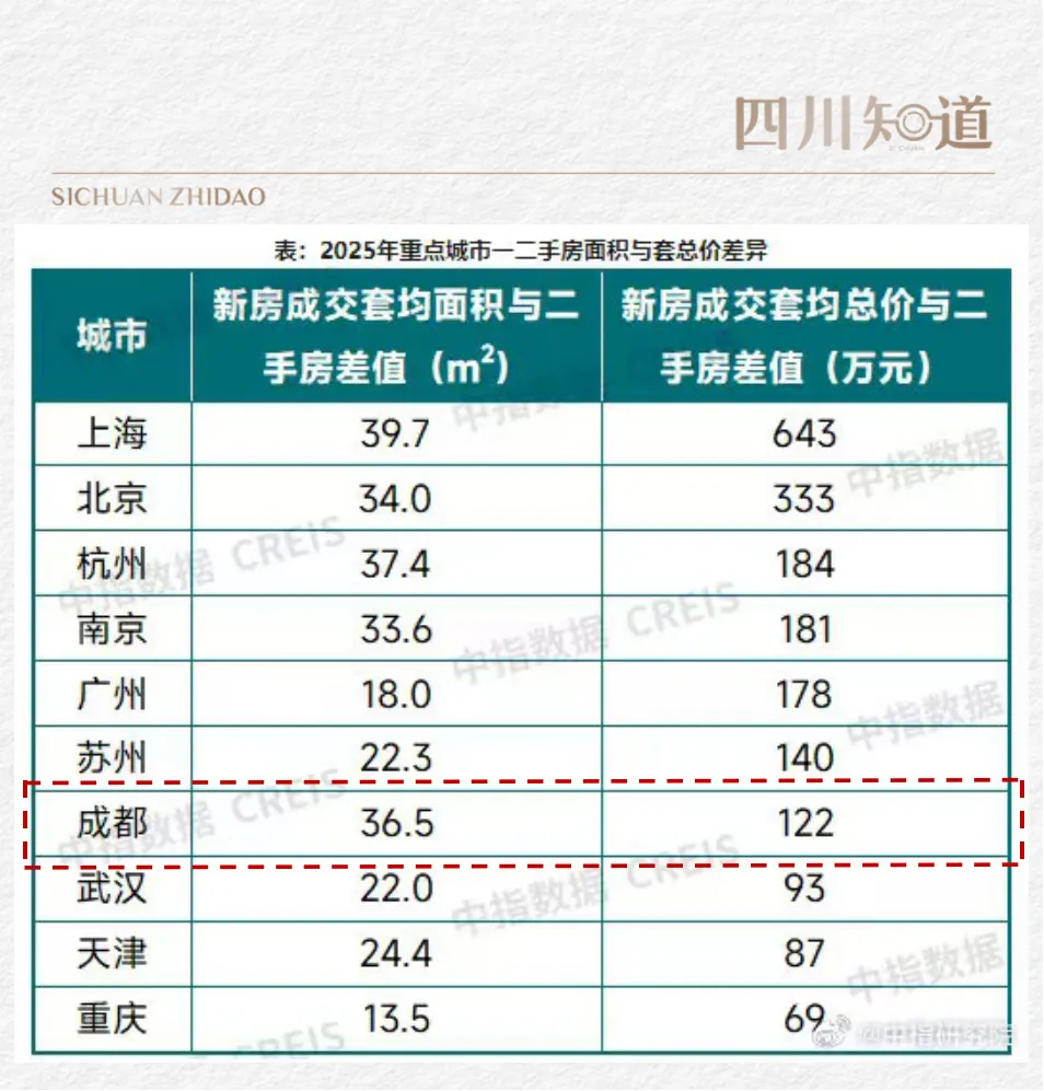 聚焦成都:2025年新房与二手房,套均面积差36㎡、套均总价价差达122万。