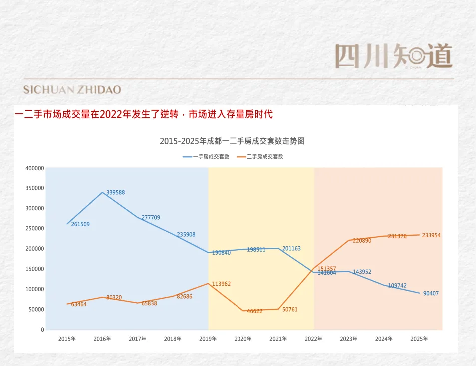 成都新房与二手房的市场主导权经历了漫长且清晰的交替演变,呈现出鲜明的阶段特征: