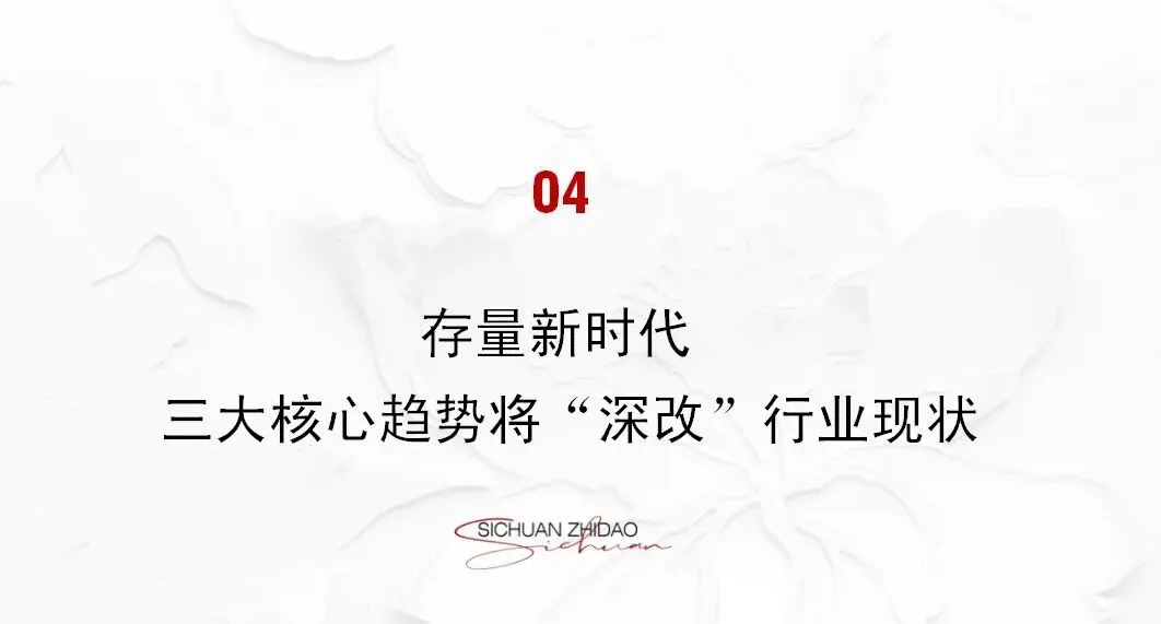 行业链条空间持续调整,存量房继续扩大占比并且不断细分,需求日益定制化、个性化——中介、服务、金融、装修、存量运营等业态将站上舞台中央。