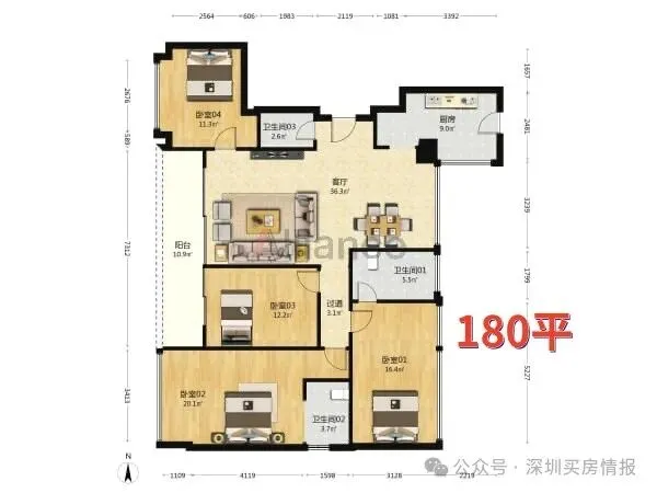 公寓197平户型三房两卫: