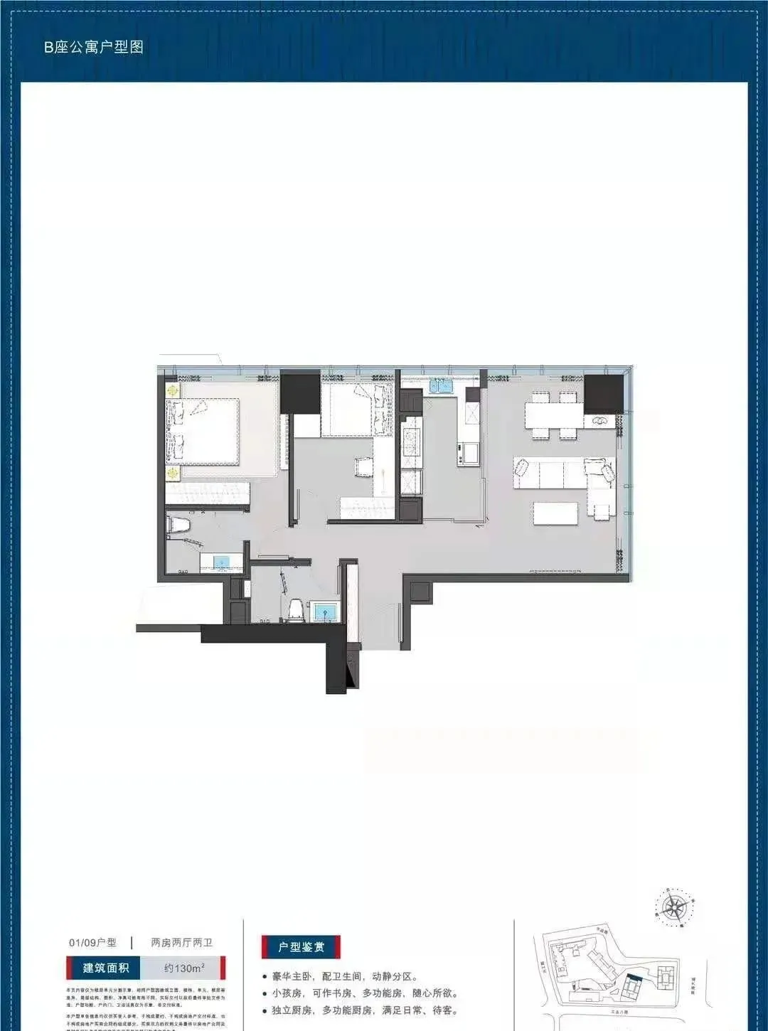 公寓130平户型两房两卫: