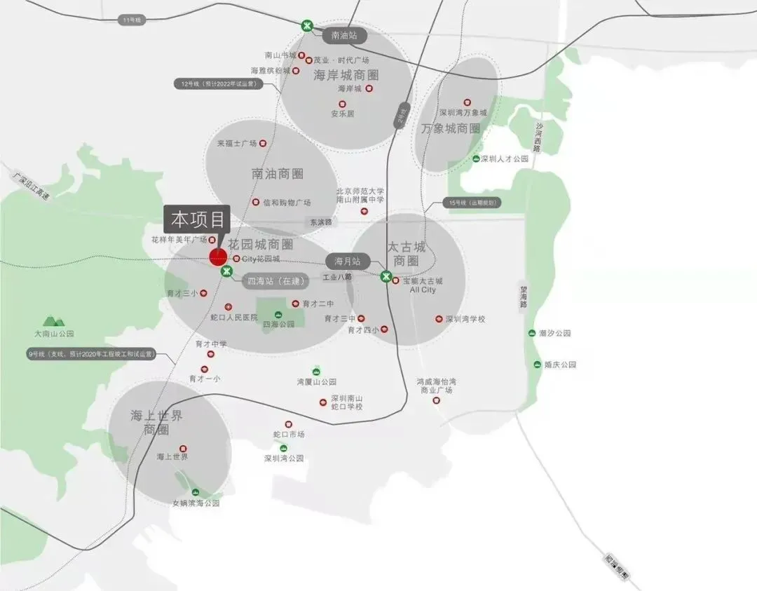 轨:双地铁无缝接驳(12/15号线四海站)本项目地下商业,已开通的12号线连接西部发展轴,未开通的15号线全长约27km,被称为前海环线;