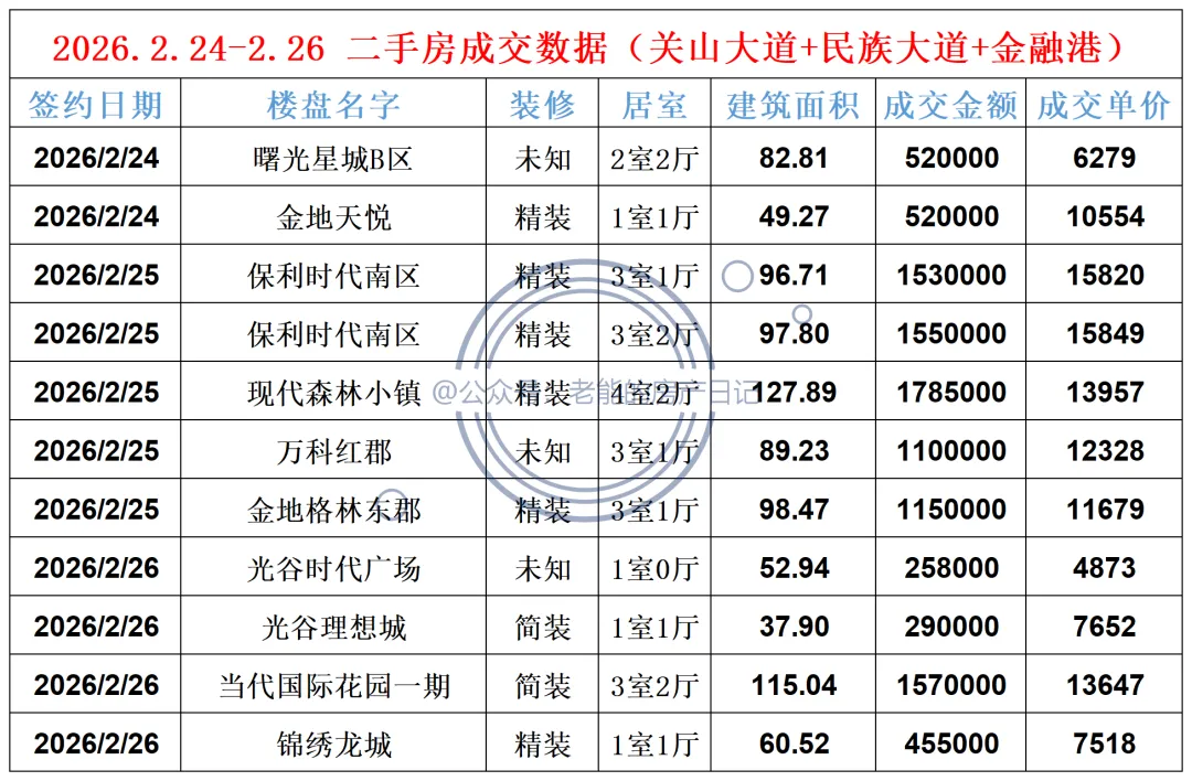 2026.2.8-2.23 二手房成交(关山大道+民族大道+金融港)