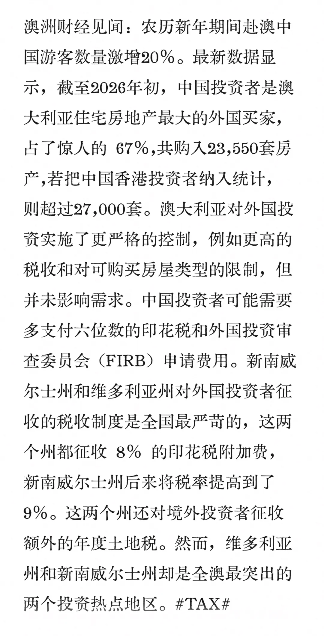 中国买家狂扫澳洲房产!67%份额创纪录,维州新州成“吸金王”