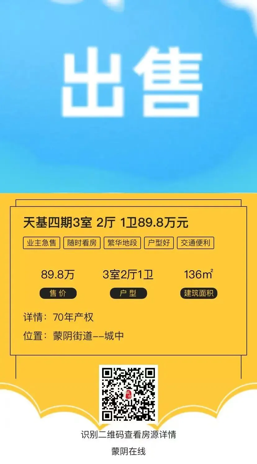 关注蒙阴在线公众微信号—蒙阴在线网络传媒,后续还会不定期为您推荐优质房源!身边有亲朋好友有相关需求的也可以分享给TA!