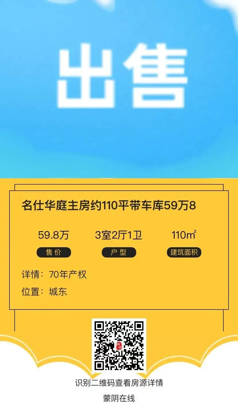 最近有在找二手房、出租、店铺转让信息吗?以下是部分房源,如果您在找房源信息可以看看!也可点击底部“阅读原文”即可进入蒙阴在线房产网,或直接向蒙阴在线公众微信号—蒙阴在线网络传媒发送关键词“房屋”,查看、发布各类房源信息
