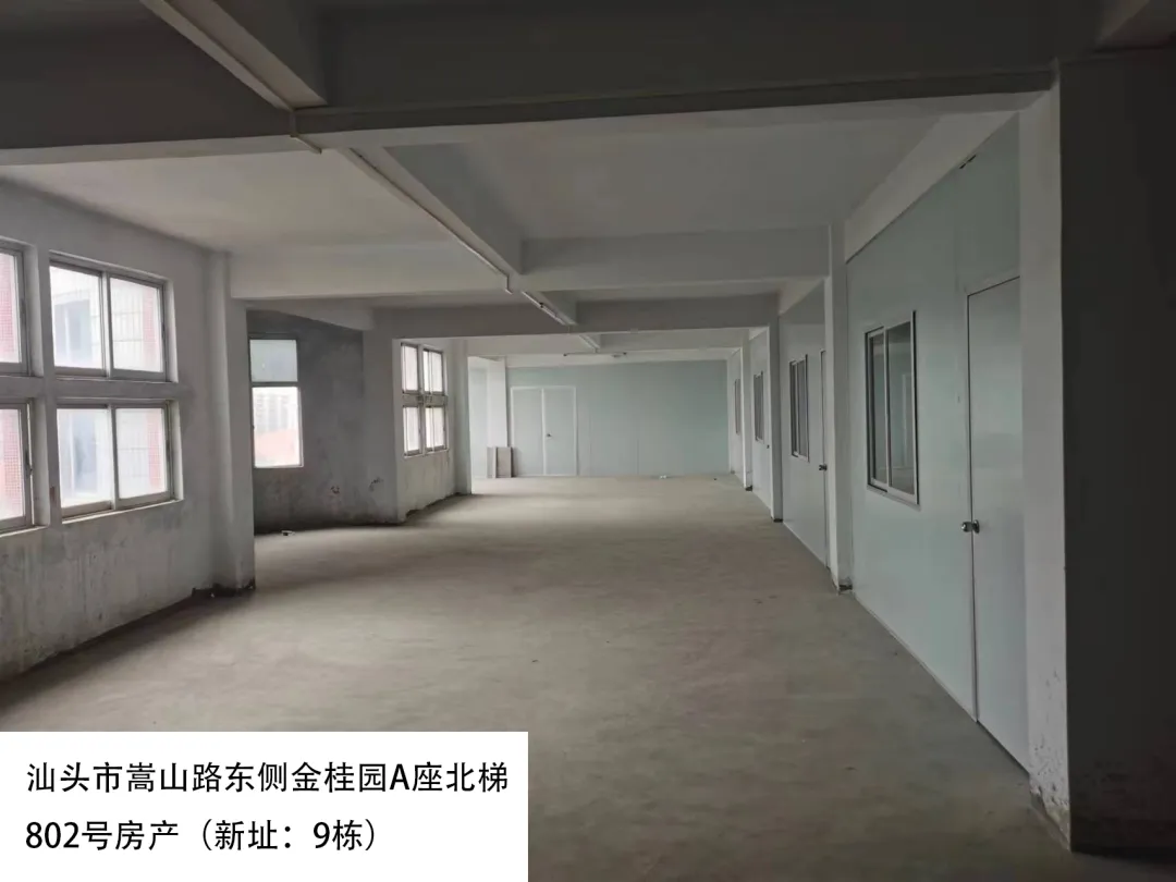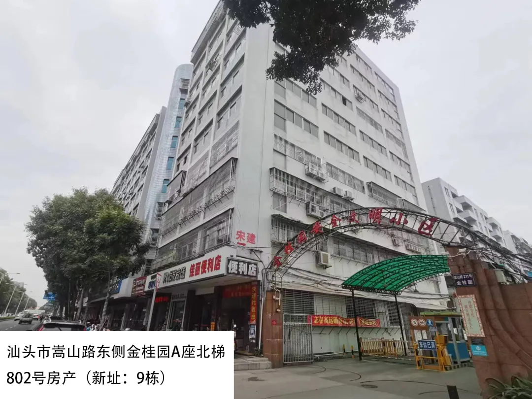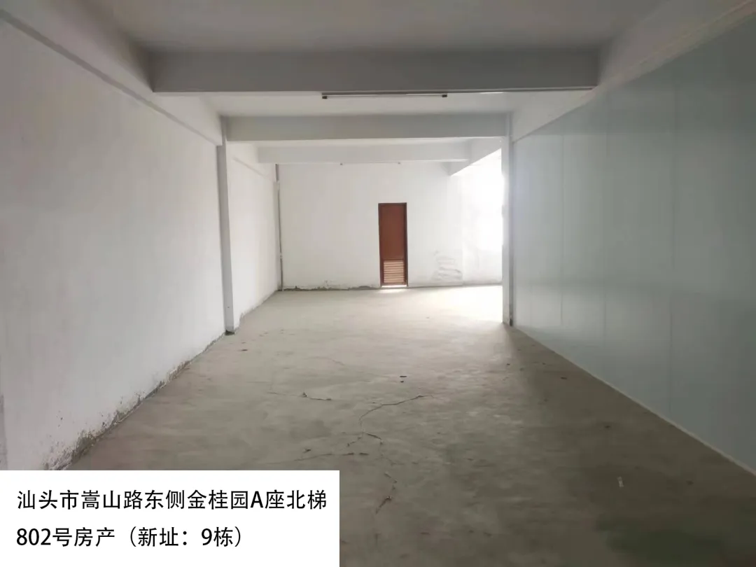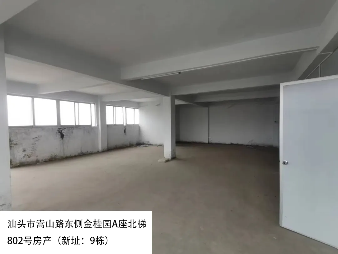 20. 汕头市嵩山路东侧金桂园A座北梯802号房(新址:9栋)、出租面积:526.78㎡、租赁期限:5年、出租用途:综合、租金:3792.6元/月起。