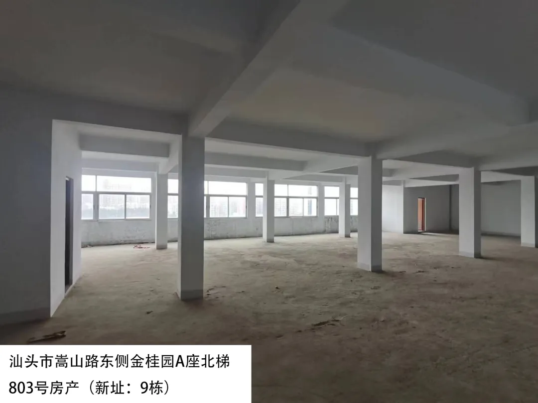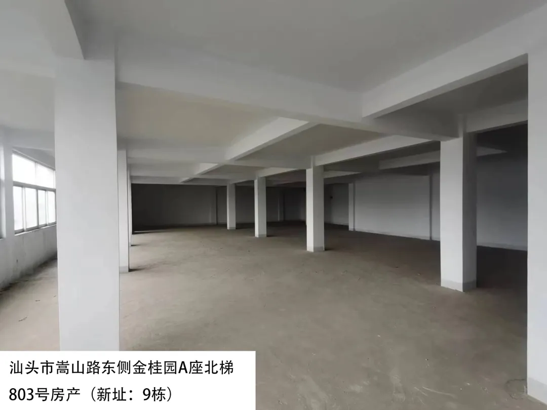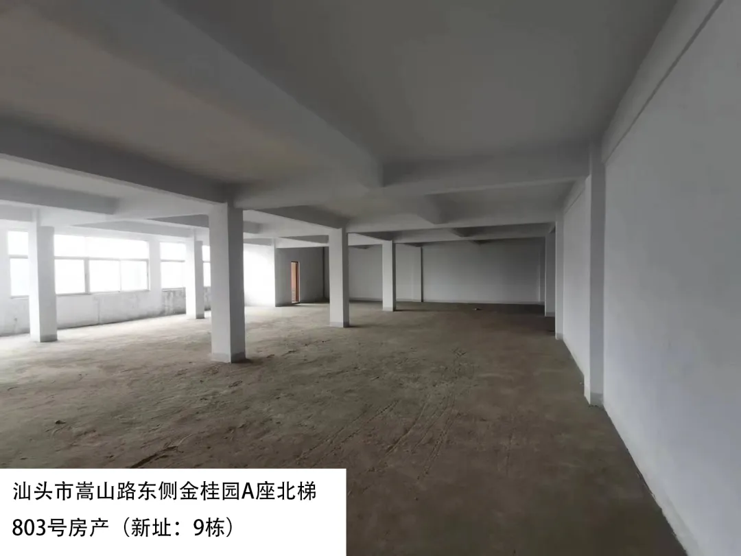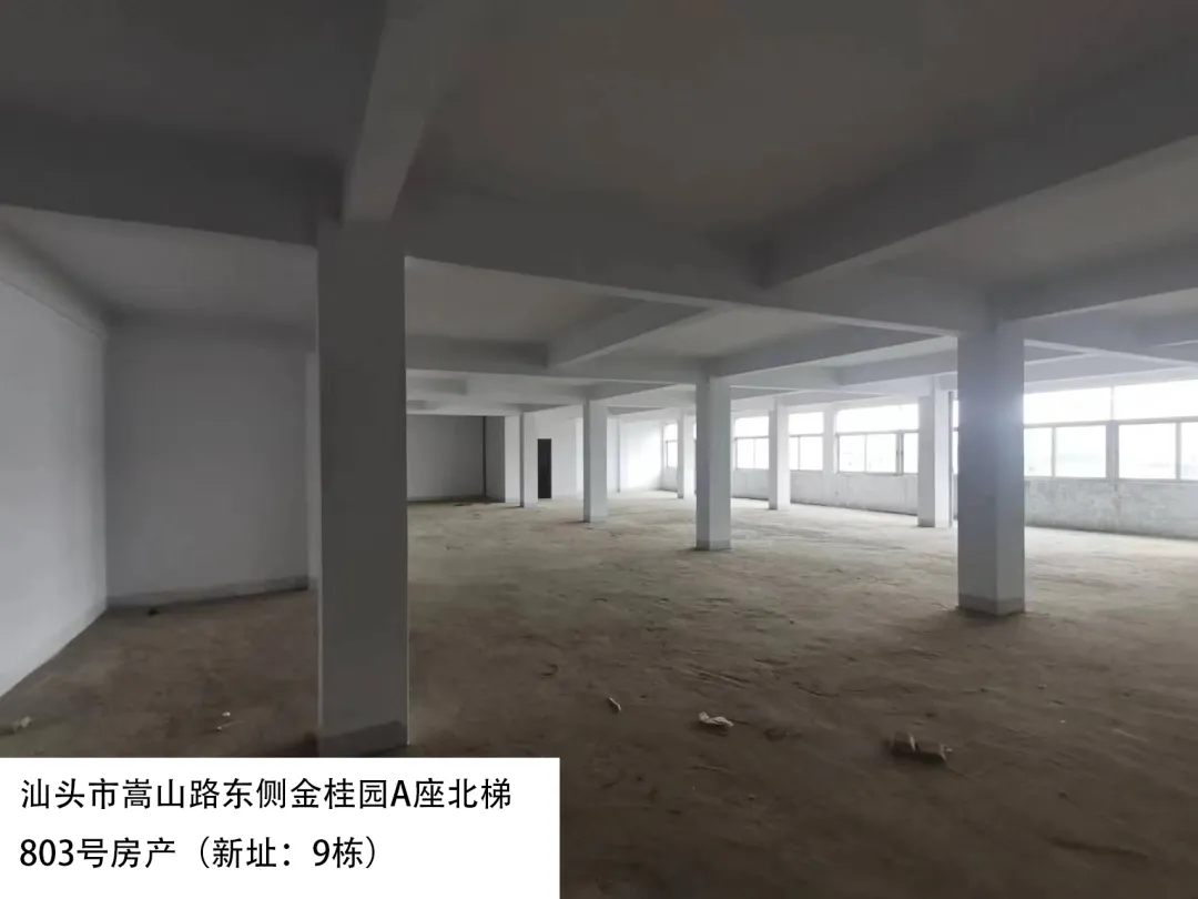 21. 汕头市嵩山路东侧金桂园A座北梯803号房(新址:9栋)、出租面积:391.38㎡、租赁期限:5年、出租用途:综合、租金:2817.9元/月起。