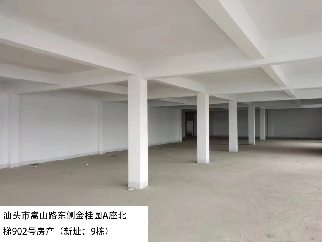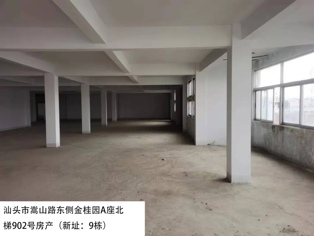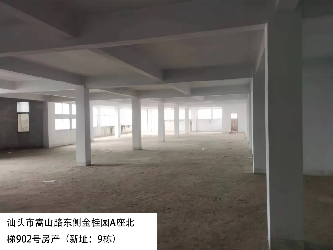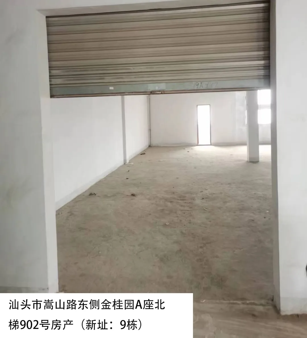 22. 汕头市嵩山路东侧金桂园A座北梯902号房(新址:9栋)、出租面积:526.78㎡、租赁期限:5年、出租用途:综合、租金:3792.6元/月起。