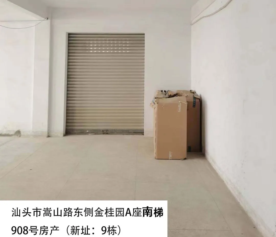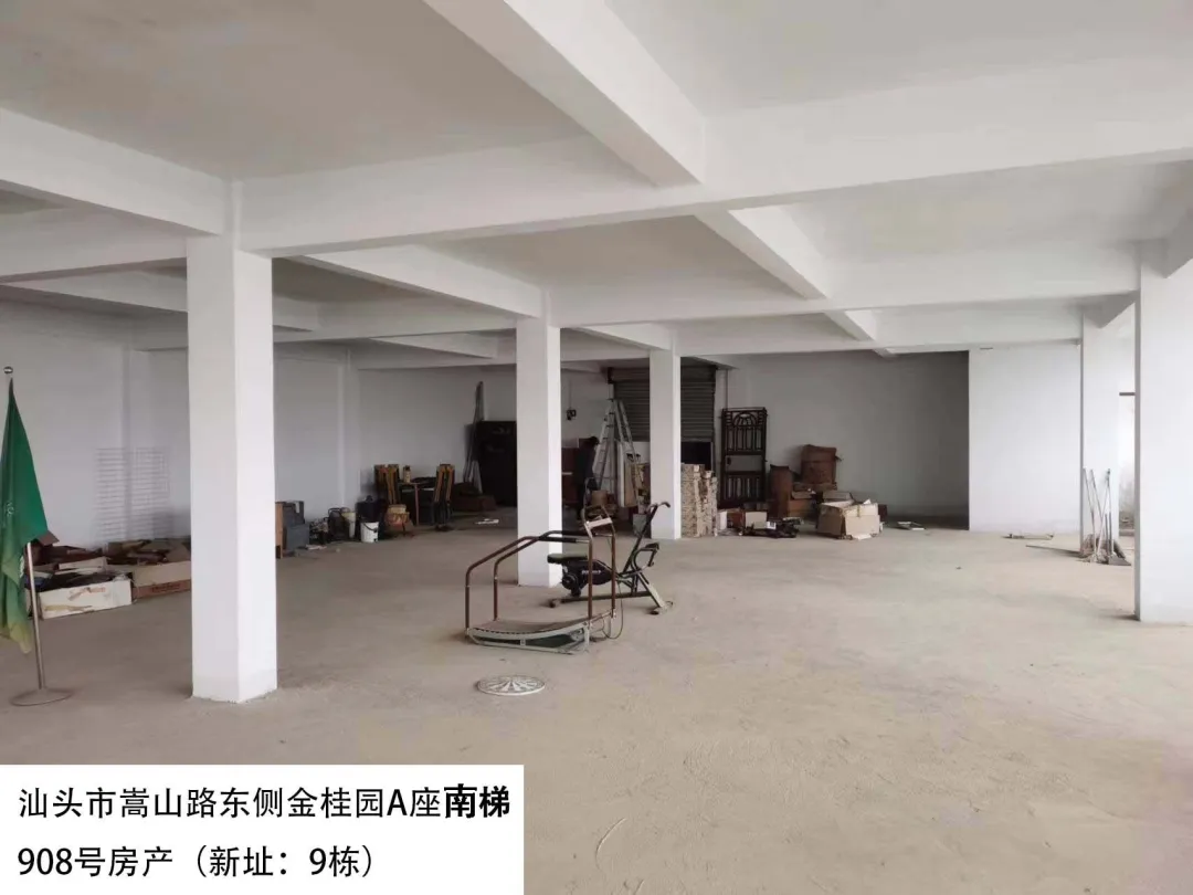 24. 汕头市嵩山路东侧金桂园A座南梯908号房(新址:9栋)、出租面积:366.13㎡、租赁期限:5年、出租用途:综合、租金:2636.1元/月起。