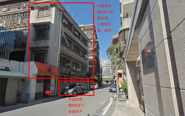32. 汕头市同益路西巷8号三楼南侧、二楼北侧、四楼、二楼南侧、三楼北侧、楼下全部房产、同益路一巷1号201号、202号房全套、出租面积:471.31㎡、租赁期限:3年、出租用途:综合、租金:4426.12元/月起。